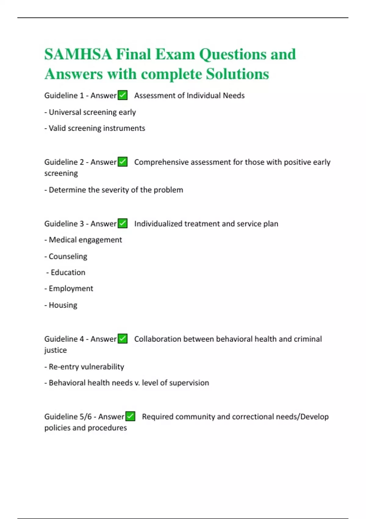SAMHSA Final Exam Questions and Answers with complete Solutions