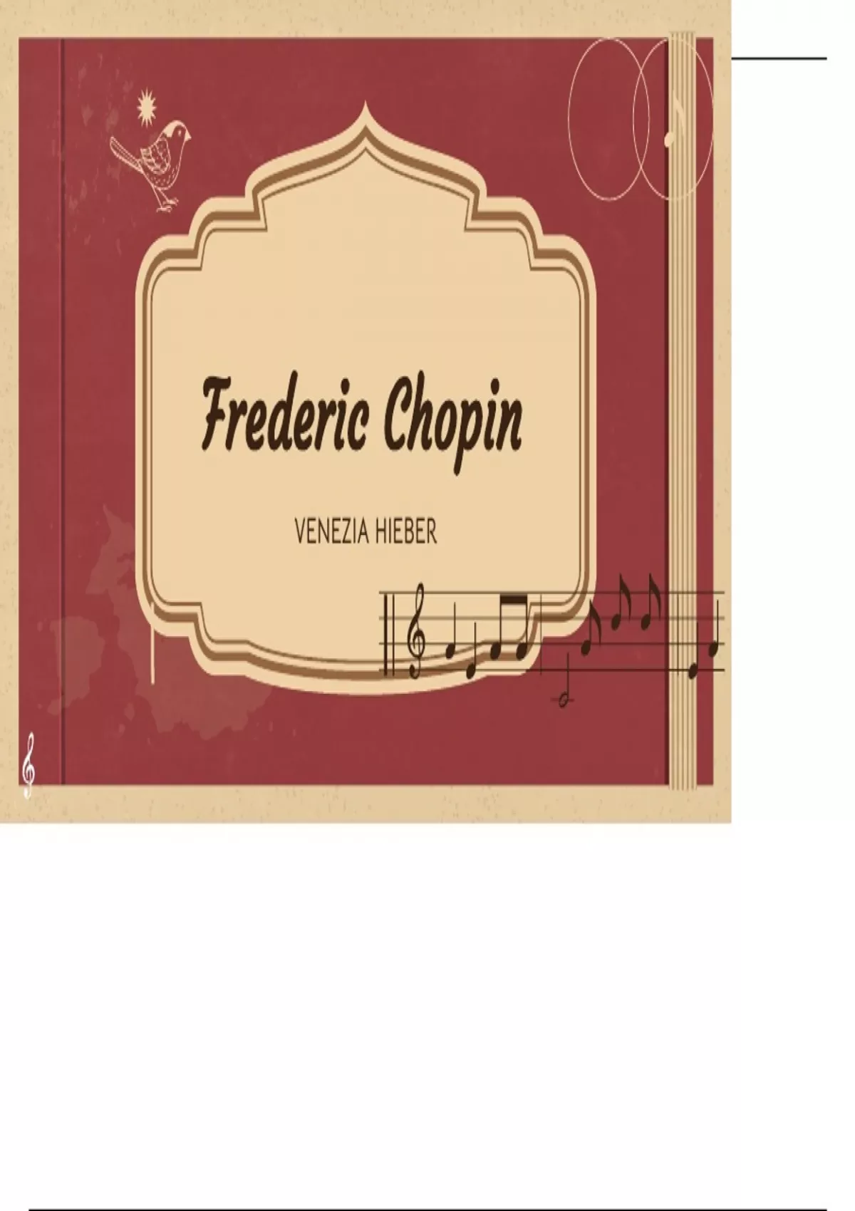 Im angefügten Dokument wird über die Musik, das Leben und die bedeutenden Werke von Frédéric Chopin berichtet. Die Präsentation beleuchtet sein herausragendes musikalisches Talent sowie seine einzigartige Persönlichkeit. Chopins Werke, wie zum Beispiel seine berühmten Nocturnes und Balladen, werden eingehend analysiert und gewürdigt. Die Darstellung bietet einen tiefen Einblick in die künstlerische Entwicklung und den Einfluss dieses herausragenden Komponisten auf die Musikgeschichte. Es wird deutlich, wie Chopins Musik das emotionale und kulturelle Gefüge seiner Zeit geprägt hat und auch heute noch Menschen auf der ganzen Welt berührt.