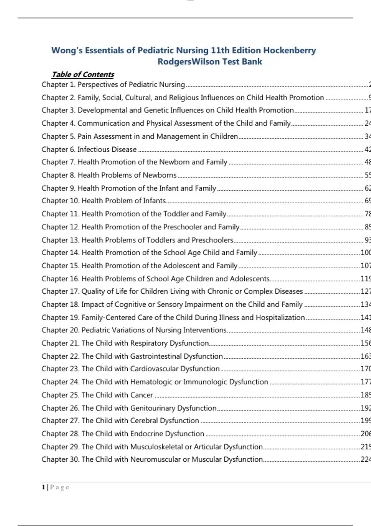 Test Bank Wong’s Essentials of Pediatric Nursing 11th Edition Hockenberry Rodgers Wilson