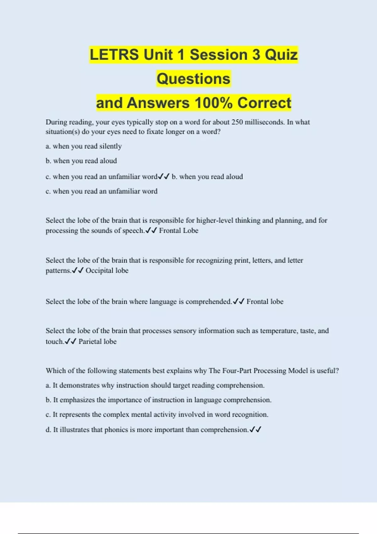LETRS Unit 1 Session 3 Quiz Questions and Answers 100% Correct