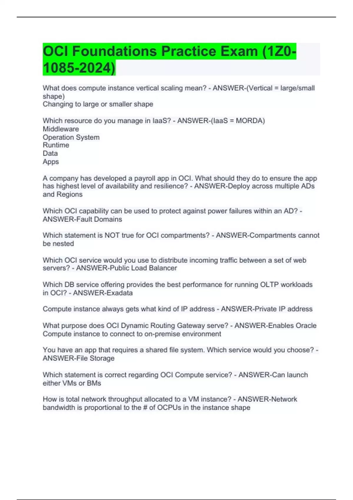 OCI Foundations Practice Exam (1Z)