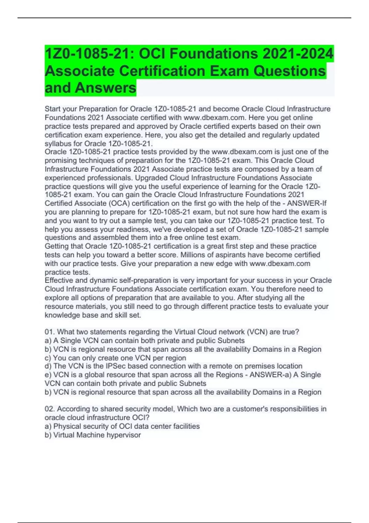 1Z0-1085-21: OCI Foundations Associate Certification Exam Questions and Answers