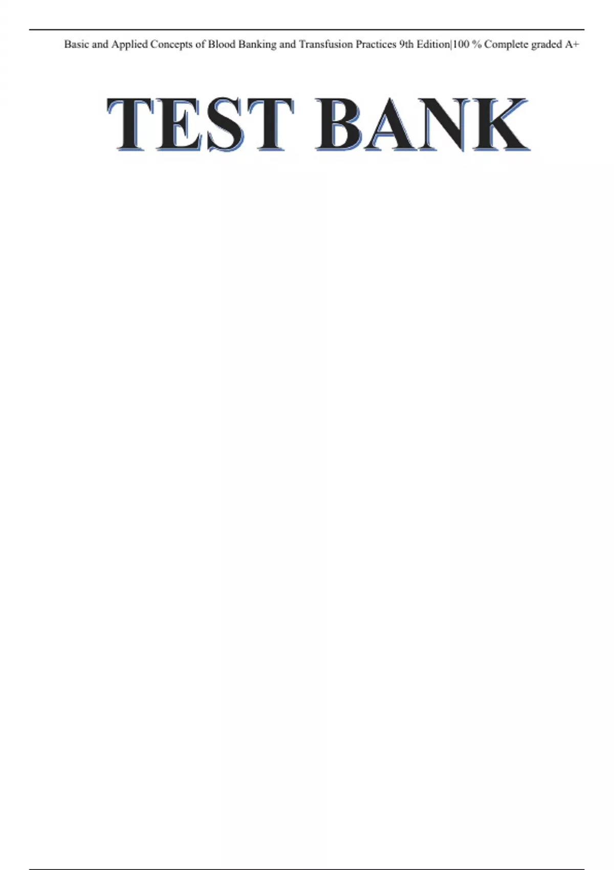 Basic and Applied Concepts of Blood Banking and Transfusion Practices 9th Edition 100 % Complete graded A+
