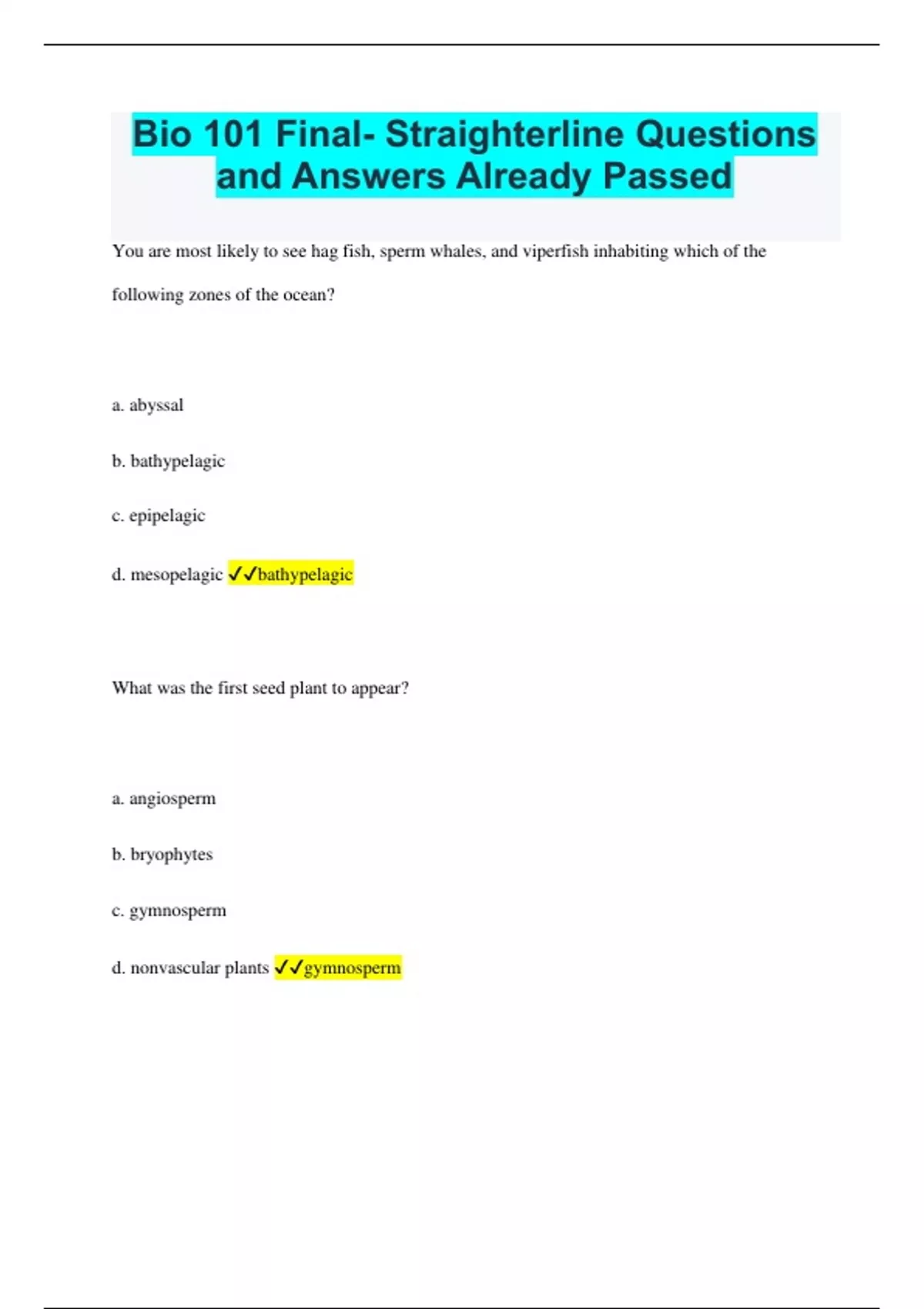 Bio 101 Final- Straighterline Questions and Answers Already Passed