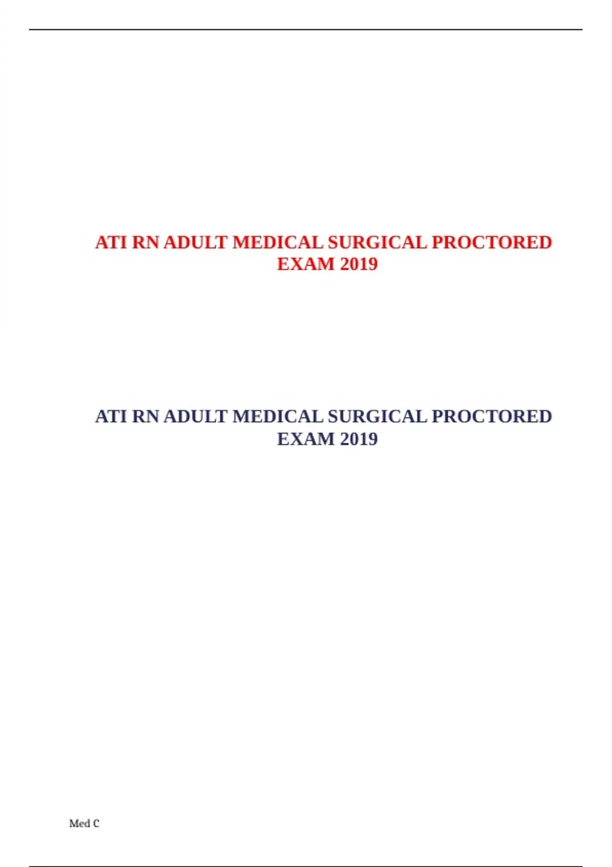 ATI RN ADULT MEDICAL SURGICAL PROCTORED EXAM 201