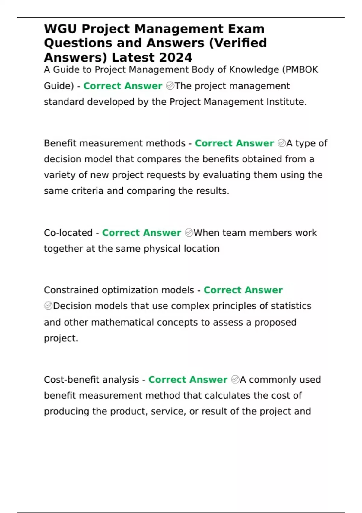 WGU Project Management Exam Questions and Answers (Verified Answers) Latest 2024