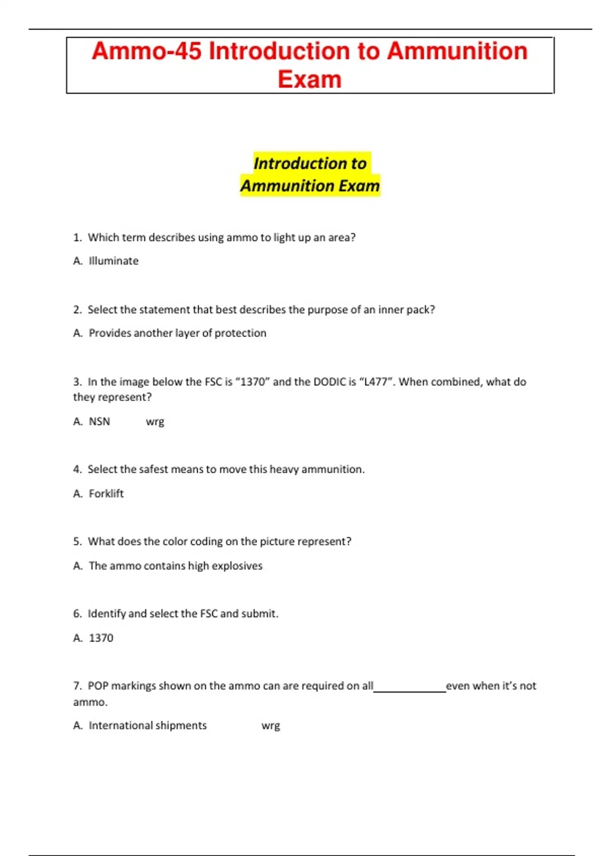 Ammo-45 Introduction to Ammunition Exam GRADED A+ SUCCESS