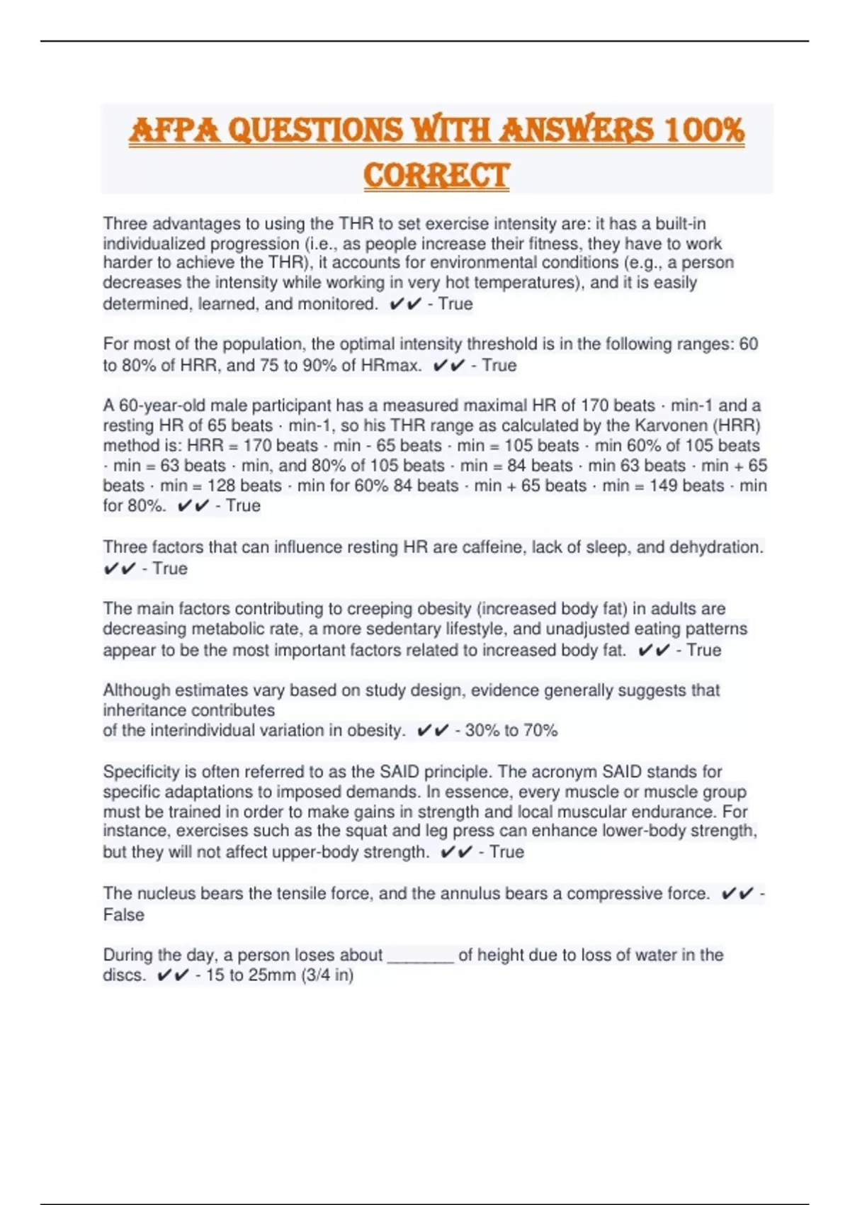 AFPA Questions With Answers 100% Correct