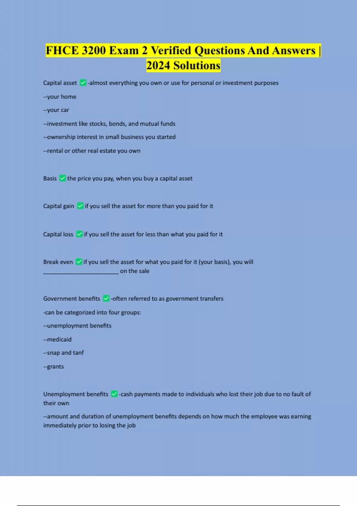 FHCE 3200 Exam 2 Verified Questions And Answers | 2024 Solutions FHCE 3200 Exam 2 Verified Questions And Answers | 2024 Solutions