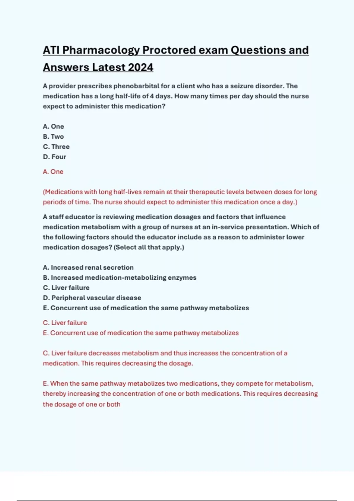 Latest ATI Pharmacology Proctored 2024 exam Questions and Answers