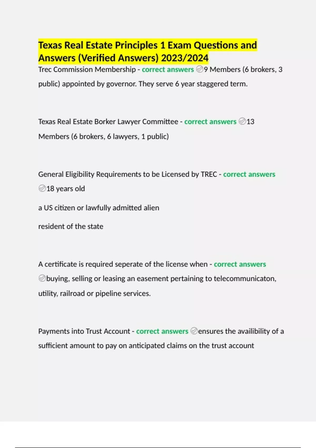 Texas Real Estate Borker Lawyer Committee - correct answers ✅13