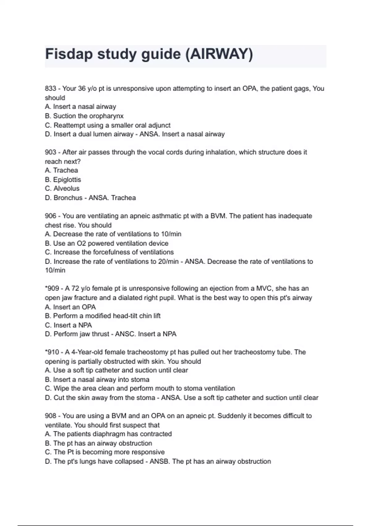 Fisdap study guide (AIRWAY) 2024/2025 graded A+ by experts