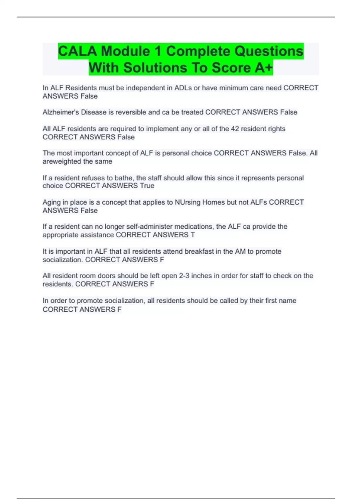 CALA Module 1 Complete Questions With Solutions To Score A+