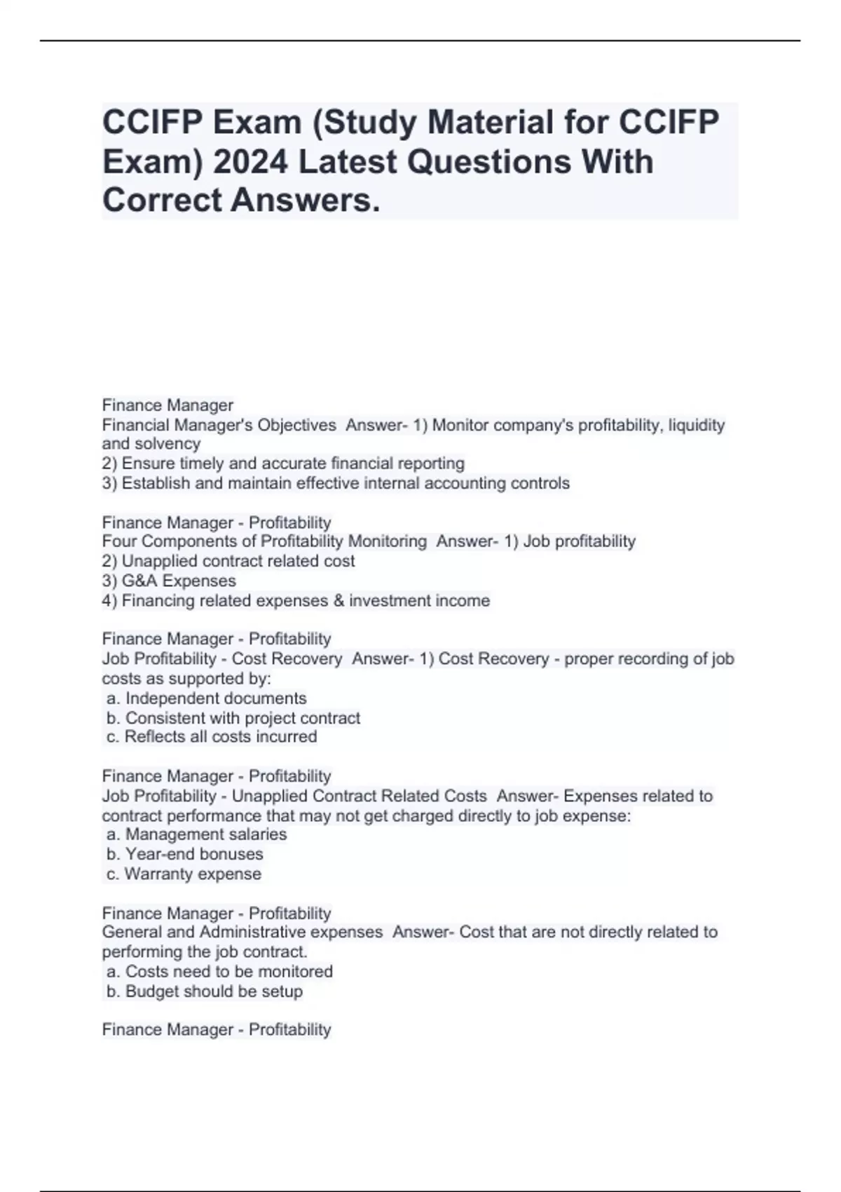 CCIFP Exam (Study Material for CCIFP Exam) 2024 Latest Questions With Correct Answers.