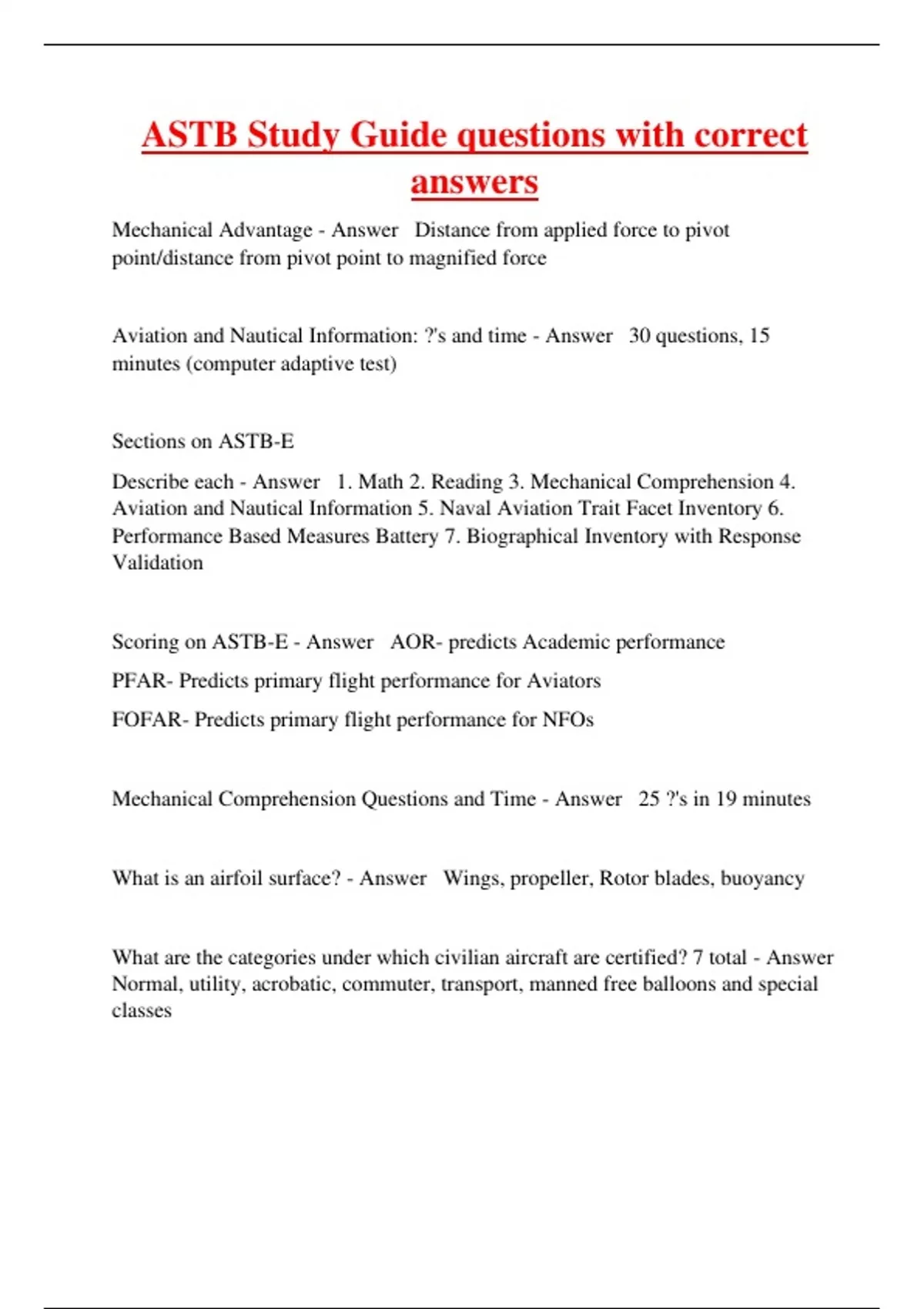 ASTB Study Guide questions with correct answers
