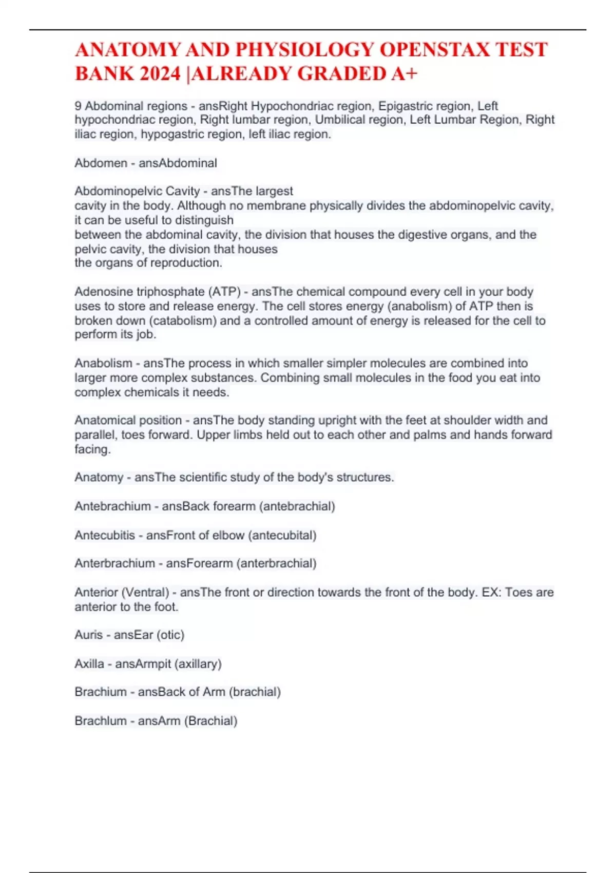 ANATOMY AND PHYSIOLOGY OPENSTAX TEST BANK 2024 |ALREADY GRADED A+