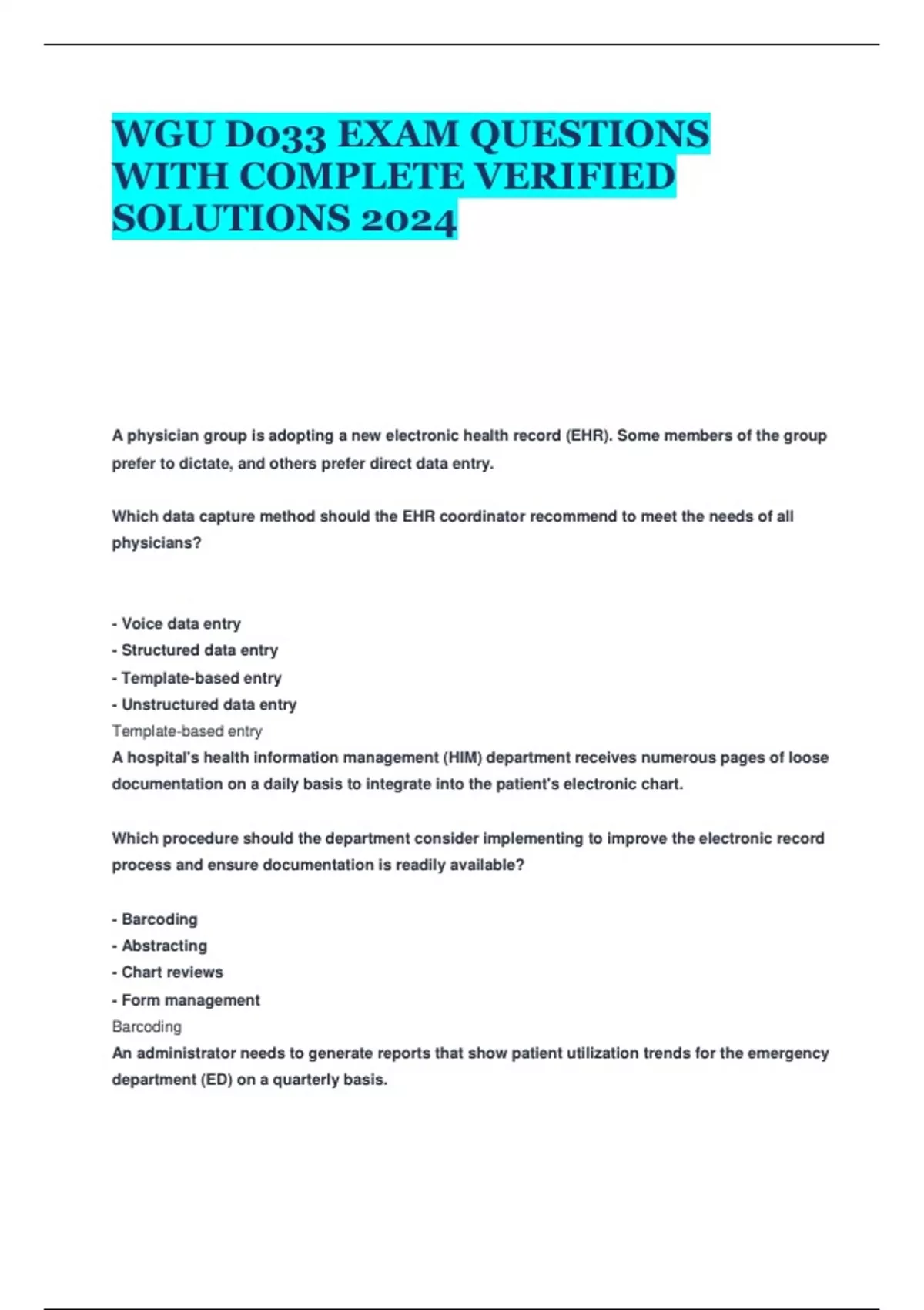 WGU D033 EXAM QUESTIONS WITH COMPLETE VERIFIED SOLUTIONS 2024
