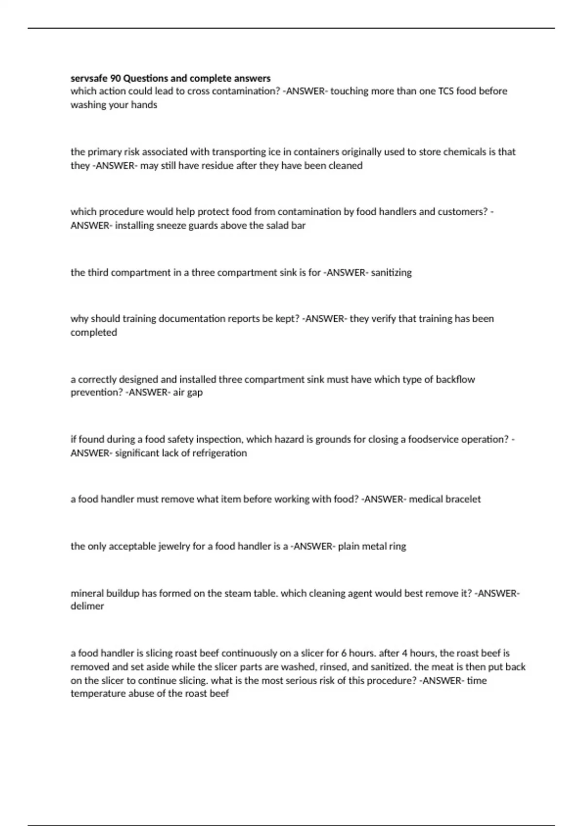 servsafe 90 questions and complete answers