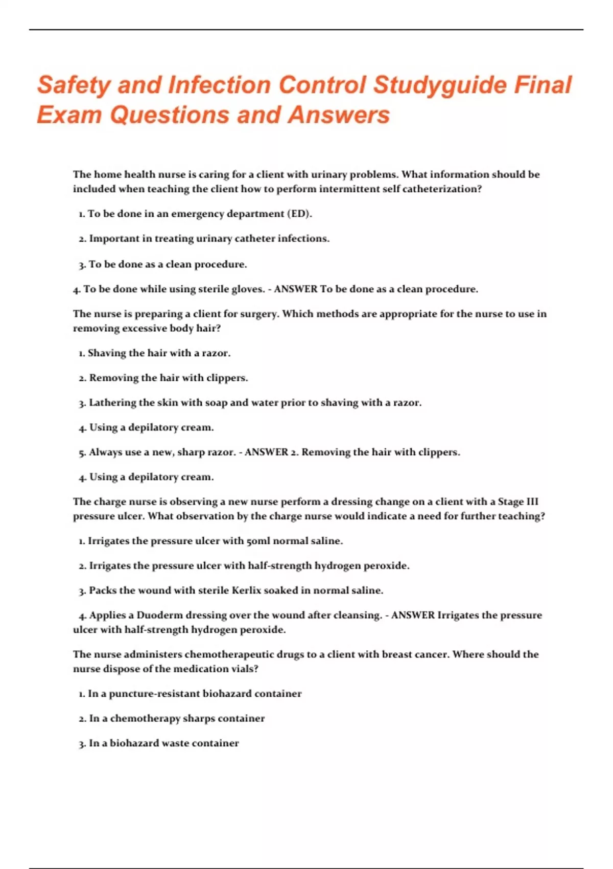 Safety and Infection Control studyguide final Exam Questions and Answers
