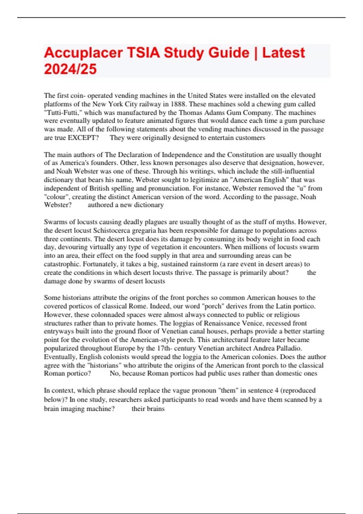 Accuplacer TSIA Study Guide | Latest 2024/25