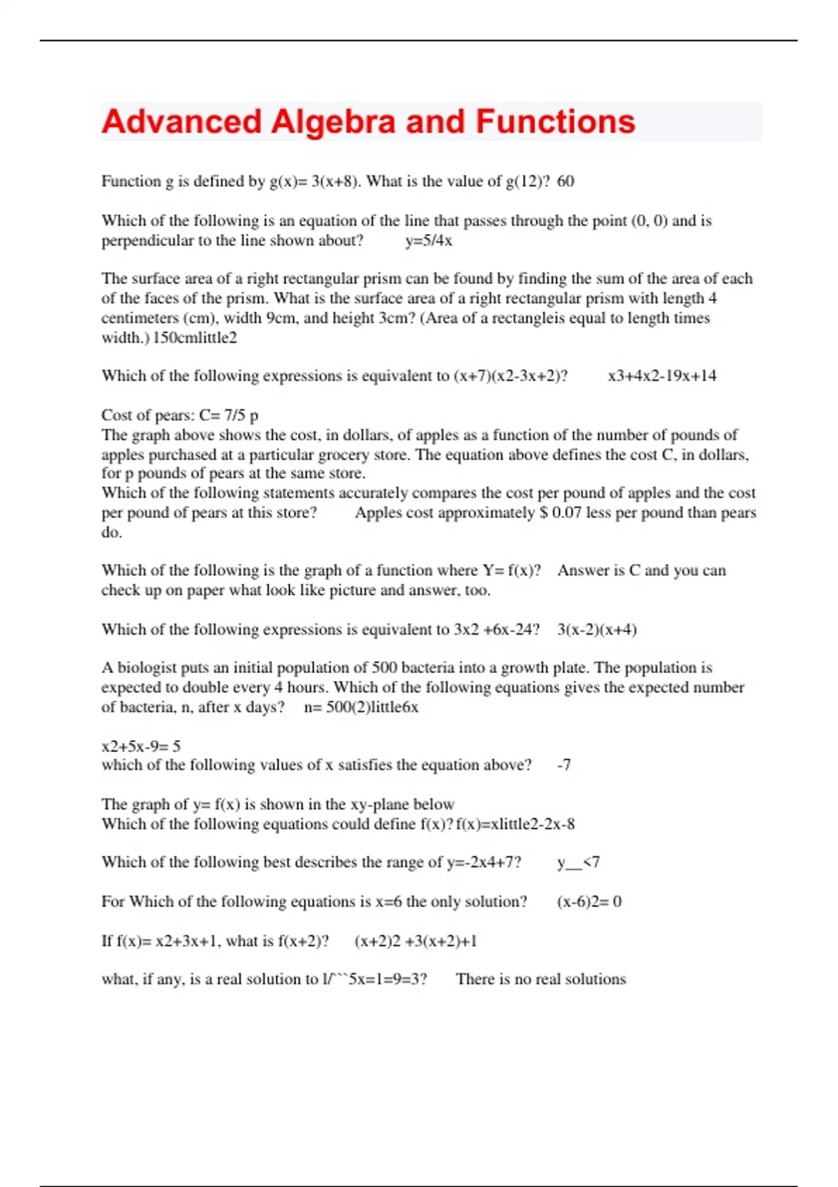 - Advanced Algebra and Functions