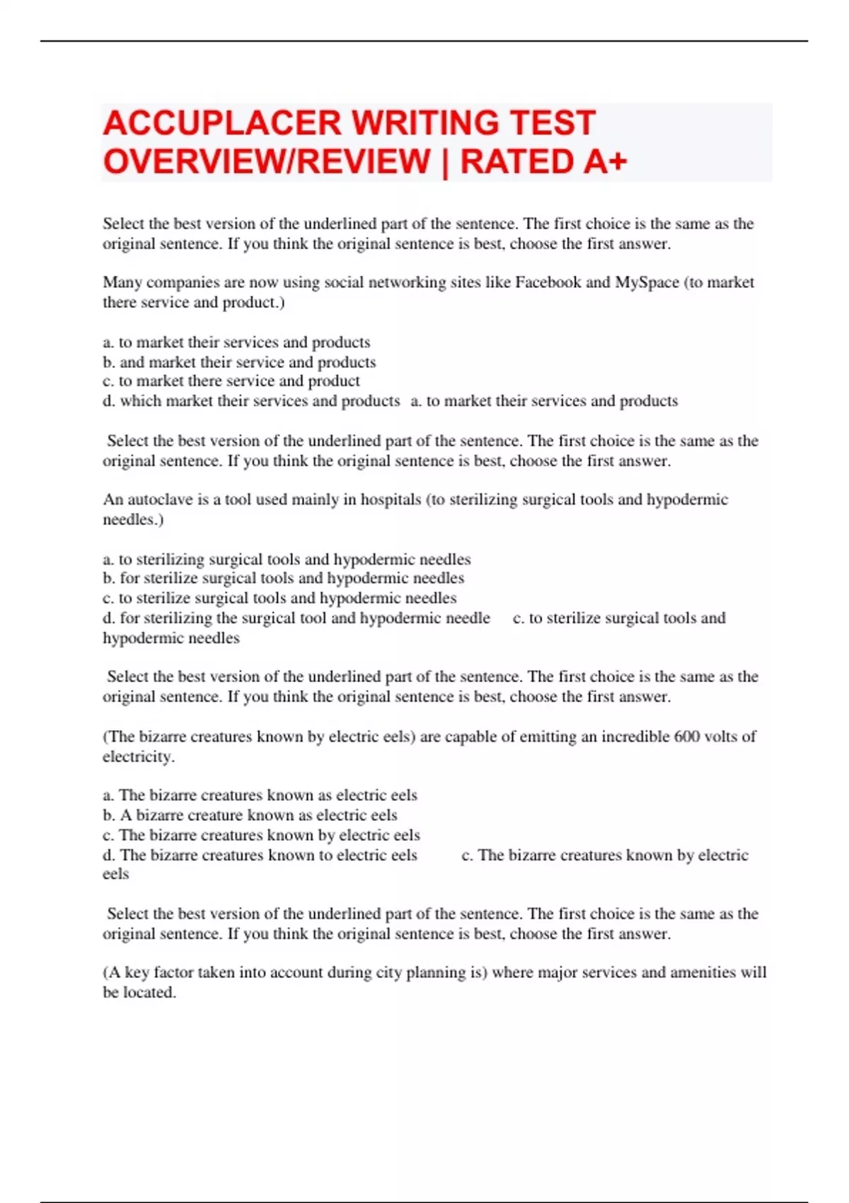 ACCUPLACER WRITING TEST OVERVIEW/REVIEW | RATED A+