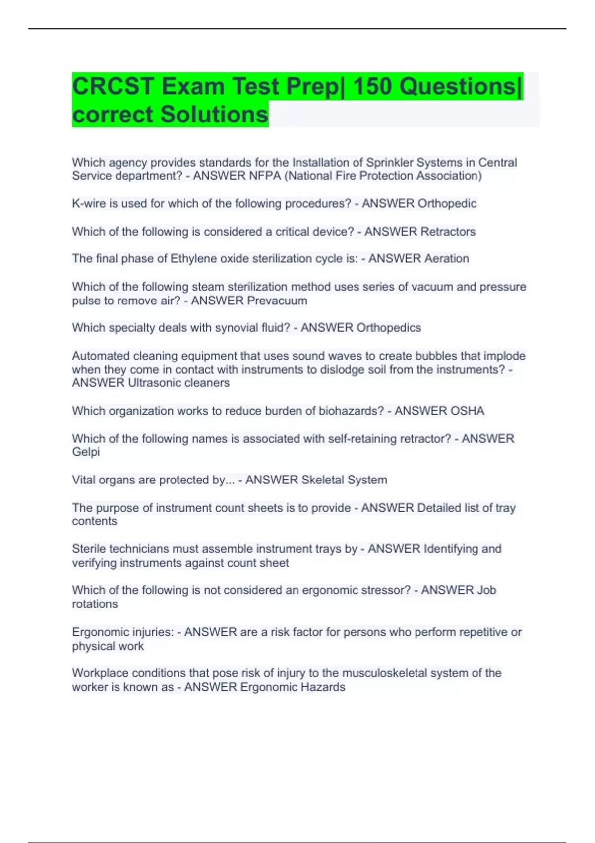 CRCST Exam Test Prep| 150 Questions| correct Solutions