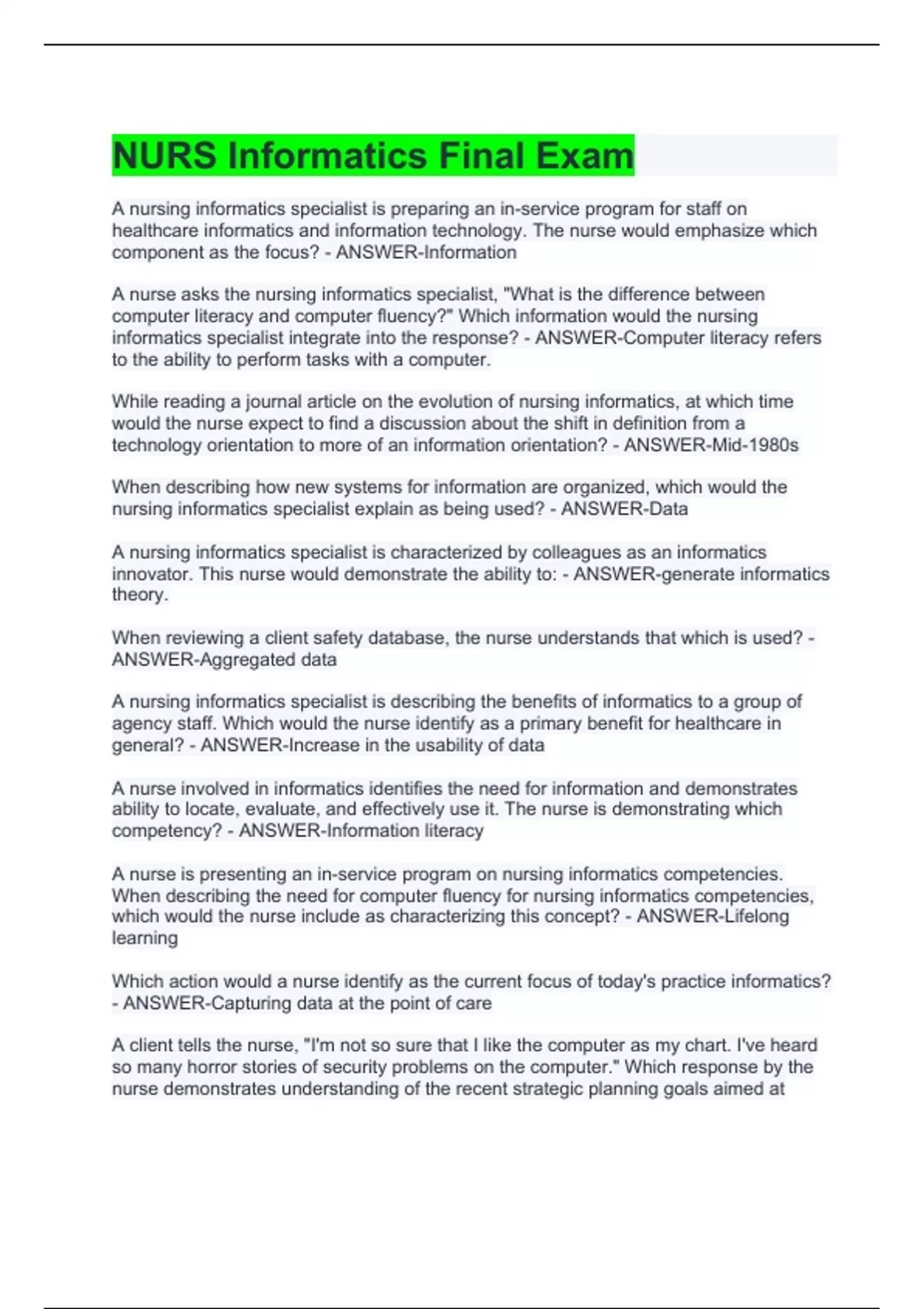 NURS Informatics Final Exam