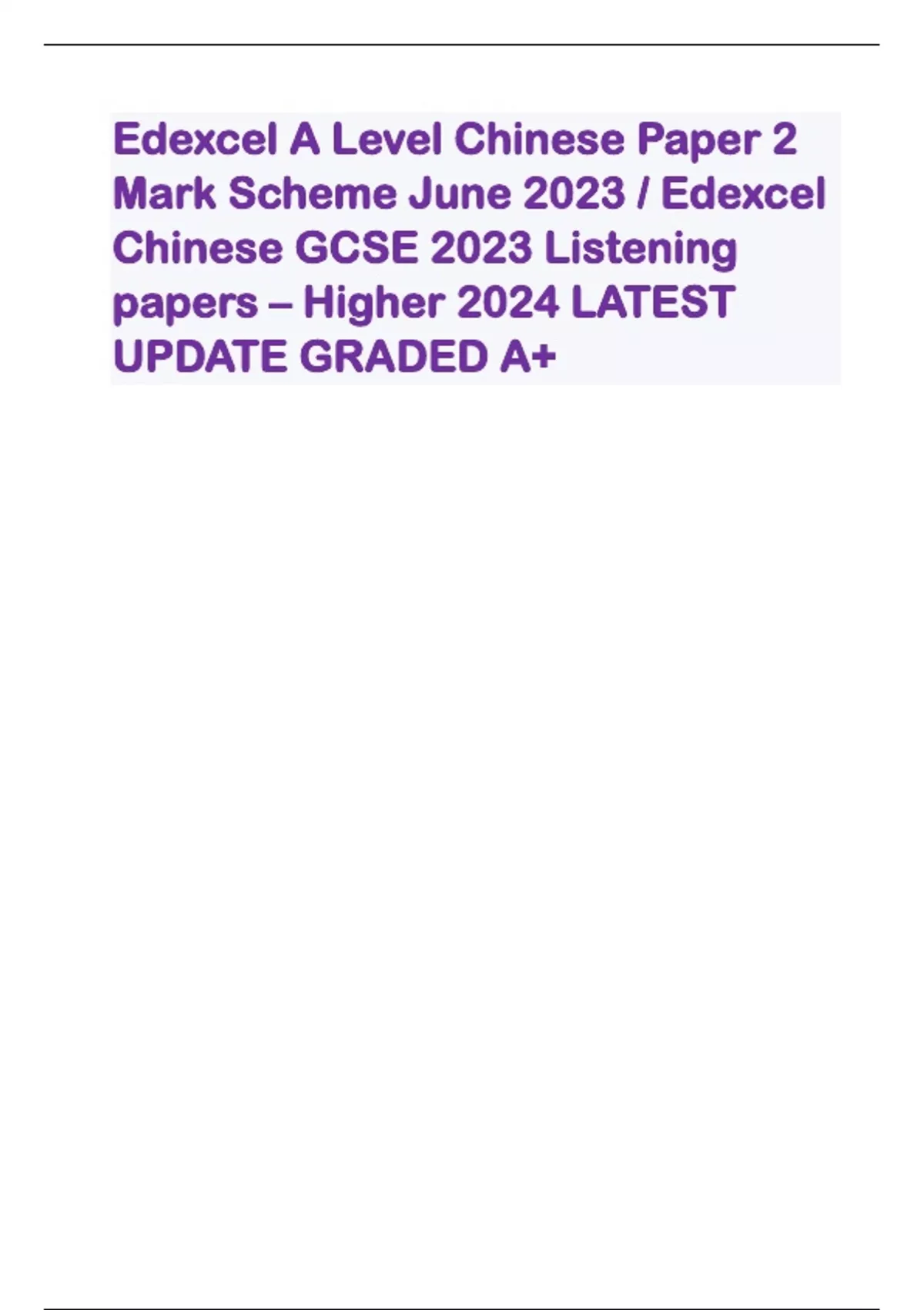 AQA QP 2023 A-level SPANISH Paper 2 Writing AQA QP 2023 A-level SPANISH Paper 2 Writing Paper 2 - CORRECT ANSWER-The writing exam worth 20% of A-Level grade Two hours - CORRECT ANSWER-Duration of the writing exam 80 marks - CORRECT ANSWER-Maximum marks achievable in the writing exam Two questions - CORRECT ANSWER-Number of questions to be answered in the exam Literary texts - CORRECT ANSWER-Type of texts that can be chosen for the exam Critical appreciation - CORRECT ANSWER-Requirement for all questions in the exam Form and technique of presentation - CORRECT ANSWERFeatures to analyze in the exam Film: Ocho apellidos vascos - CORRECT ANSWER-The film that the booklet prepares students to write about 300 words - CORRECT ANSWER-Approximate word count expected for each essay No word limit - CORRECT ANSWER-Students can write more than 300 words No dictionary - CORRECT ANSWER-Not allowed to use a dictionary during the exam No access to the film - CORRECT ANSWER-Students cannot refer to the film during the exam Assessment Objectives - CORRECT ANSWER-Four objectives assessed in the Spanish A-Level course AO3 and AO4 - CORRECT ANSWER-Assessment objectives assessed in Paper 2 Quality of language - CORRECT ANSWER-Assessment objective related to language accuracy