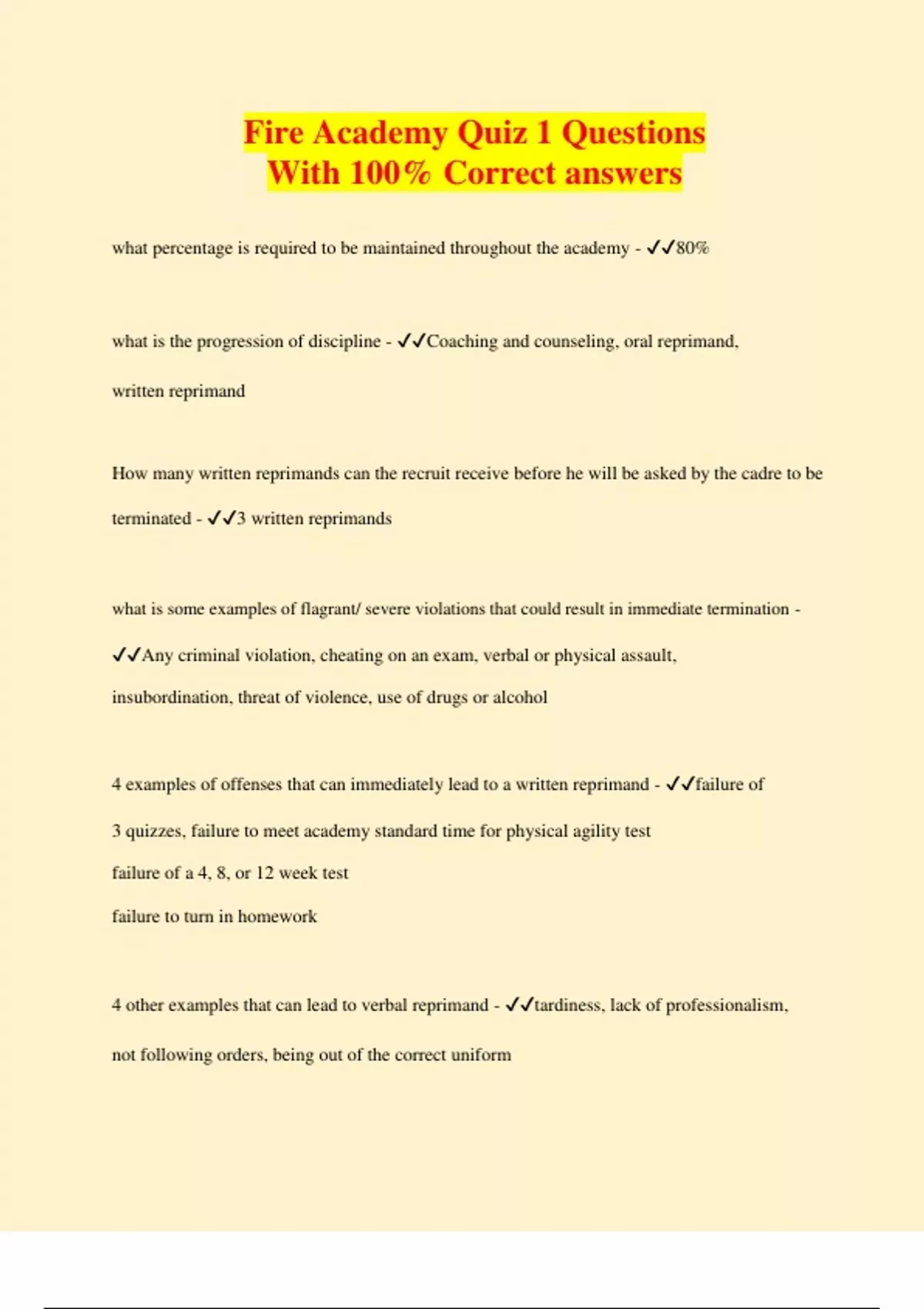 Fire Academy Quiz 1 Questions With 100% Correct answers