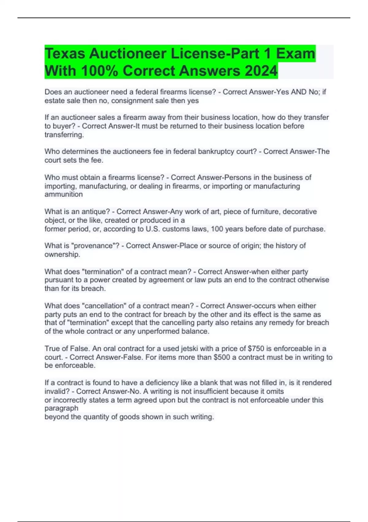 Texas Auctioneer License-Part 1 Exam With 100% Correct Answers 2024