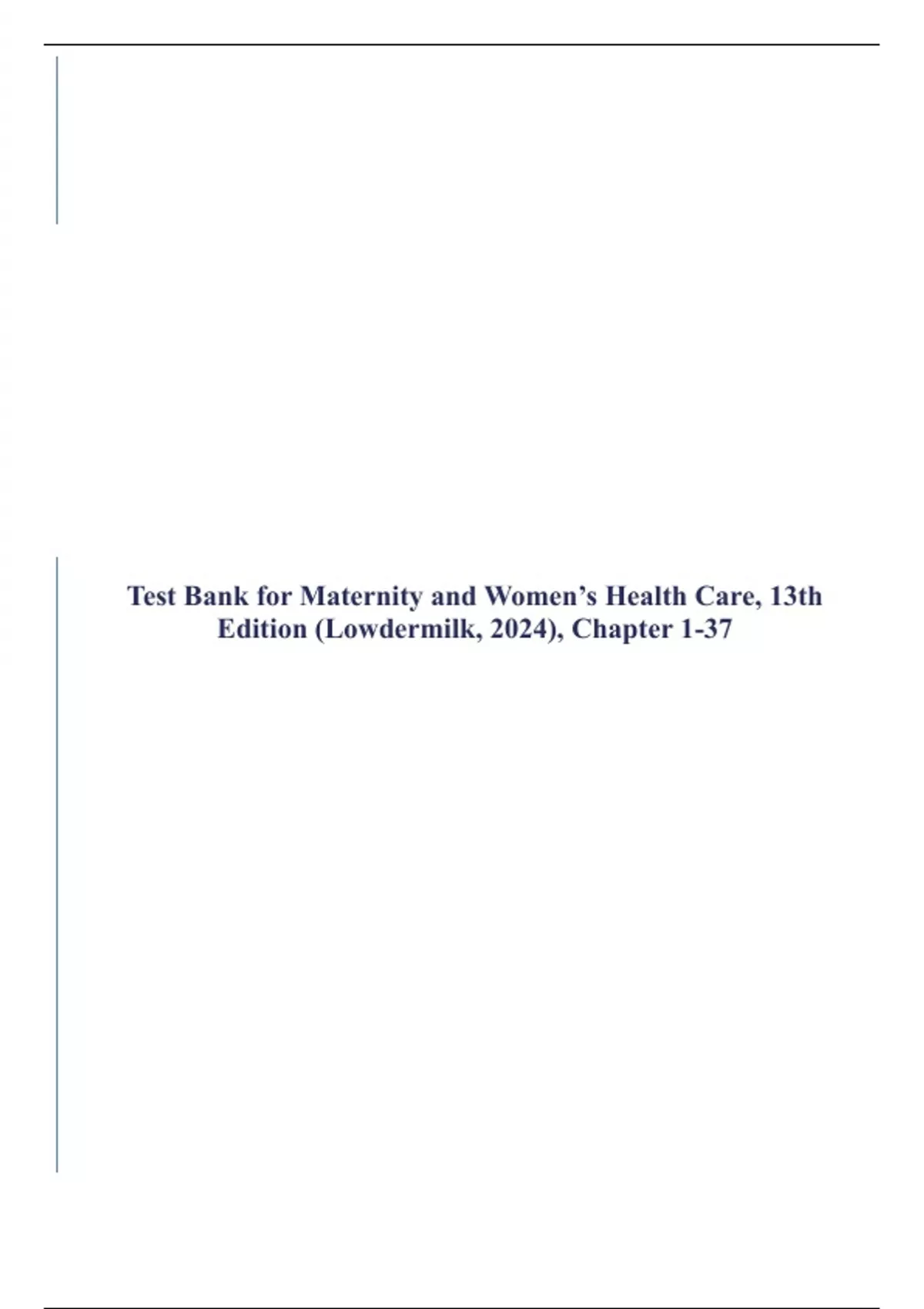 , Maternity and Women's Health Care 13th Edition Lowdermilk Test