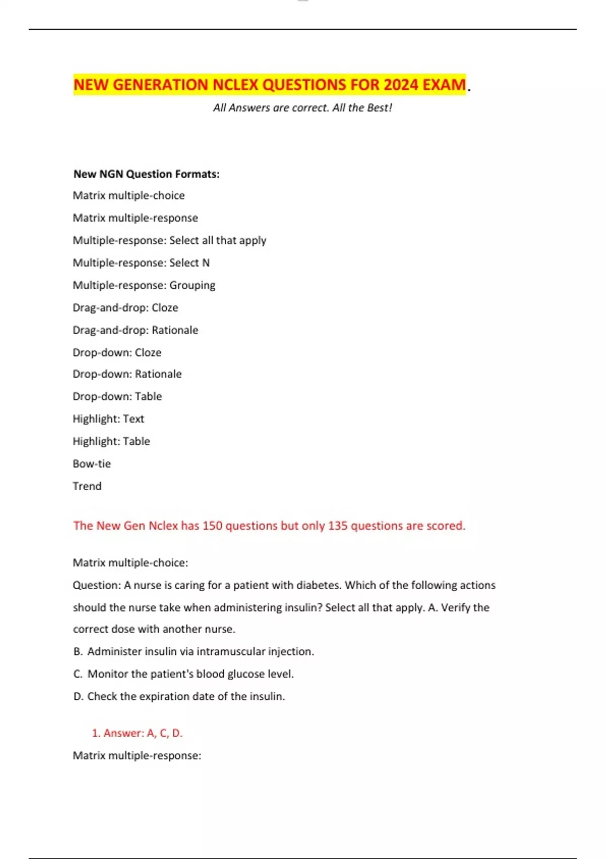 NEW GENERATION NCLEX QUESTIONS FOR 2024 EXAM.