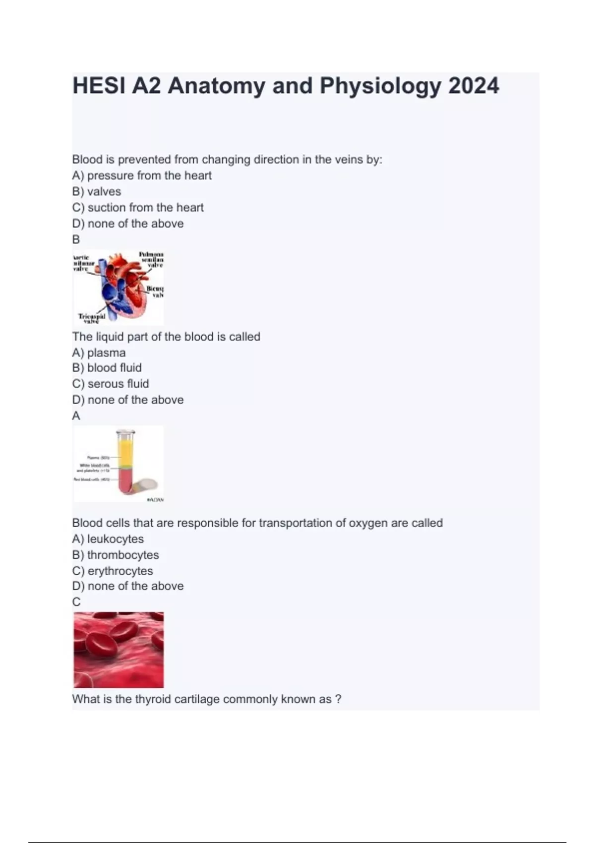 - HESI A2 Anatomy and Physiology 2024