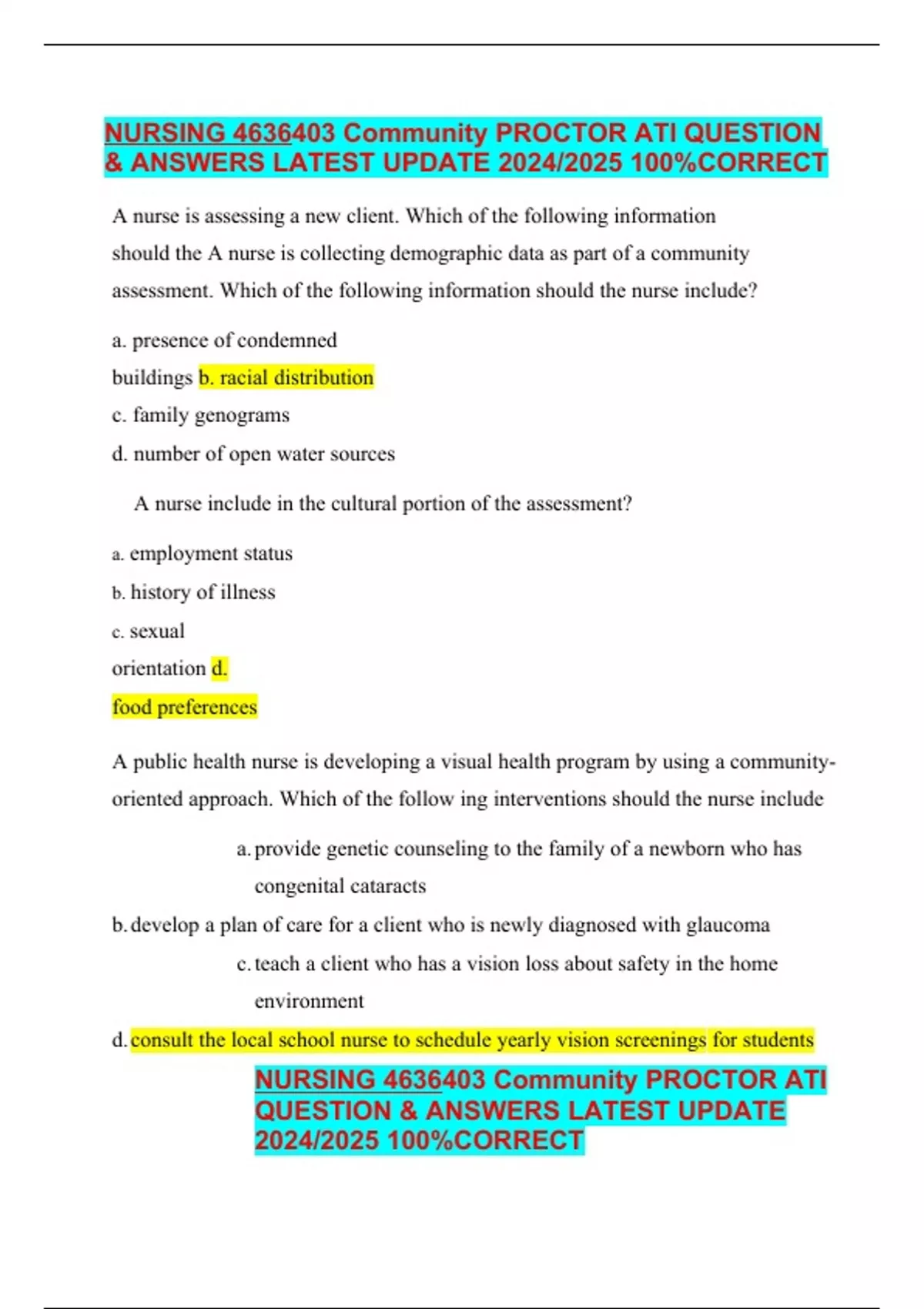 NURSING 4636403 Community PROCTOR ATI QUESTION & ANSWERS LATEST UPDATE 2024/2025 100%CORRECT