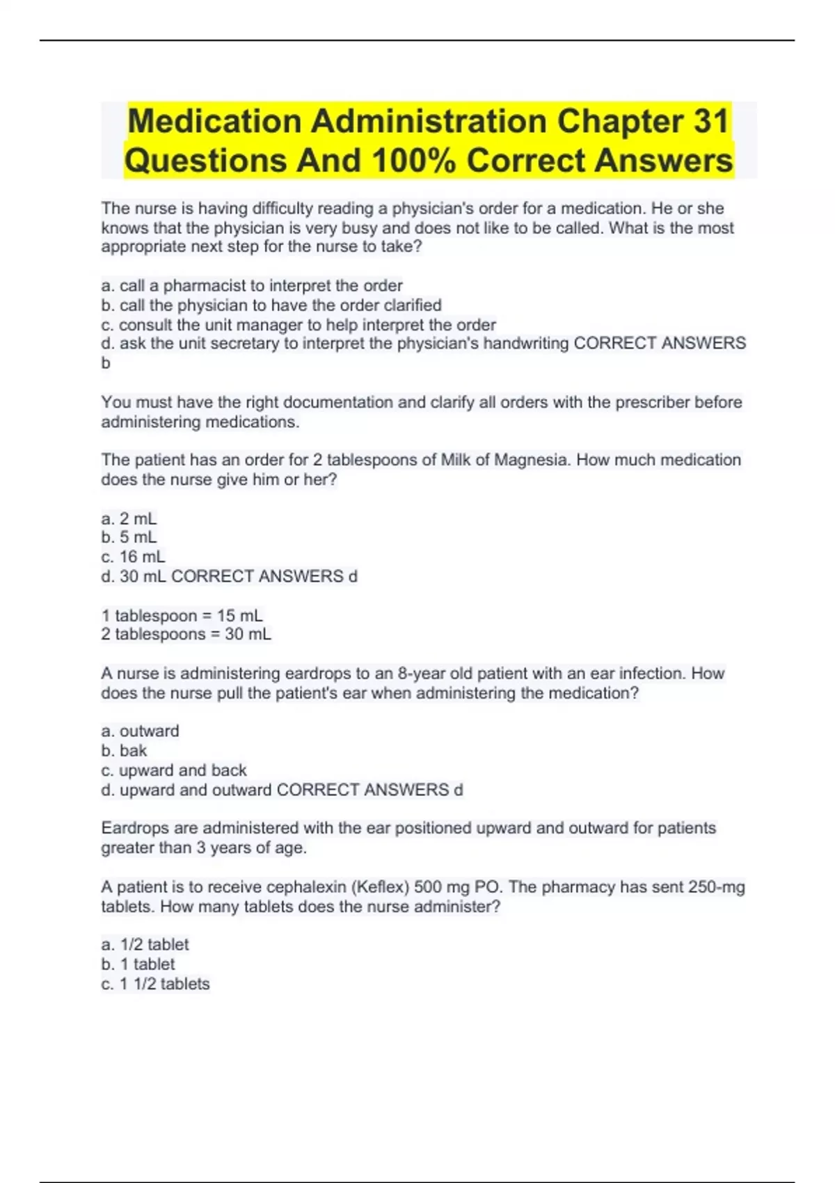 Medication Administration Chapter 31 Questions And 100% Correct Answers