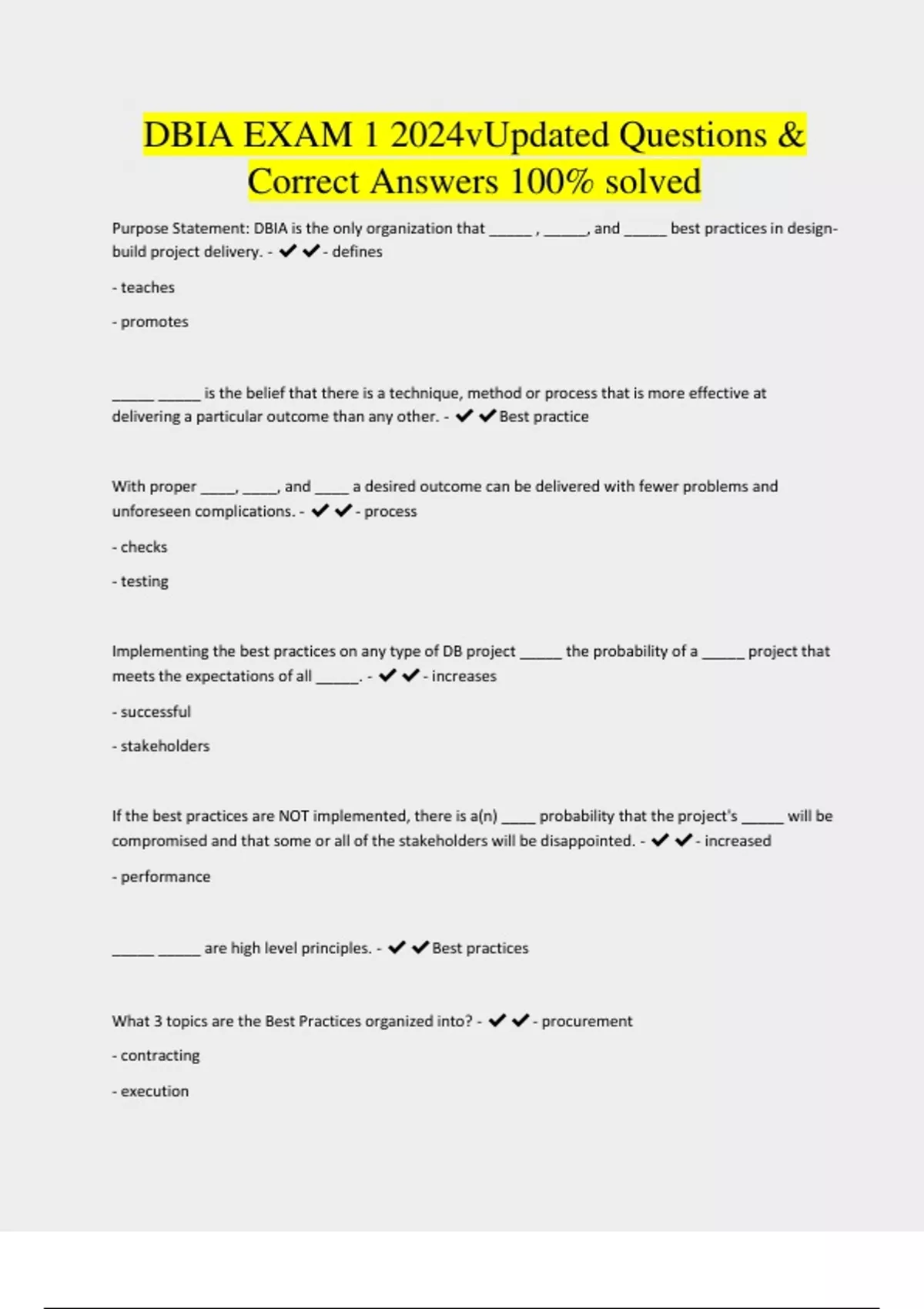 DBIA EXAM 1 2024vUpdated Questions & Correct Answers 100% solved