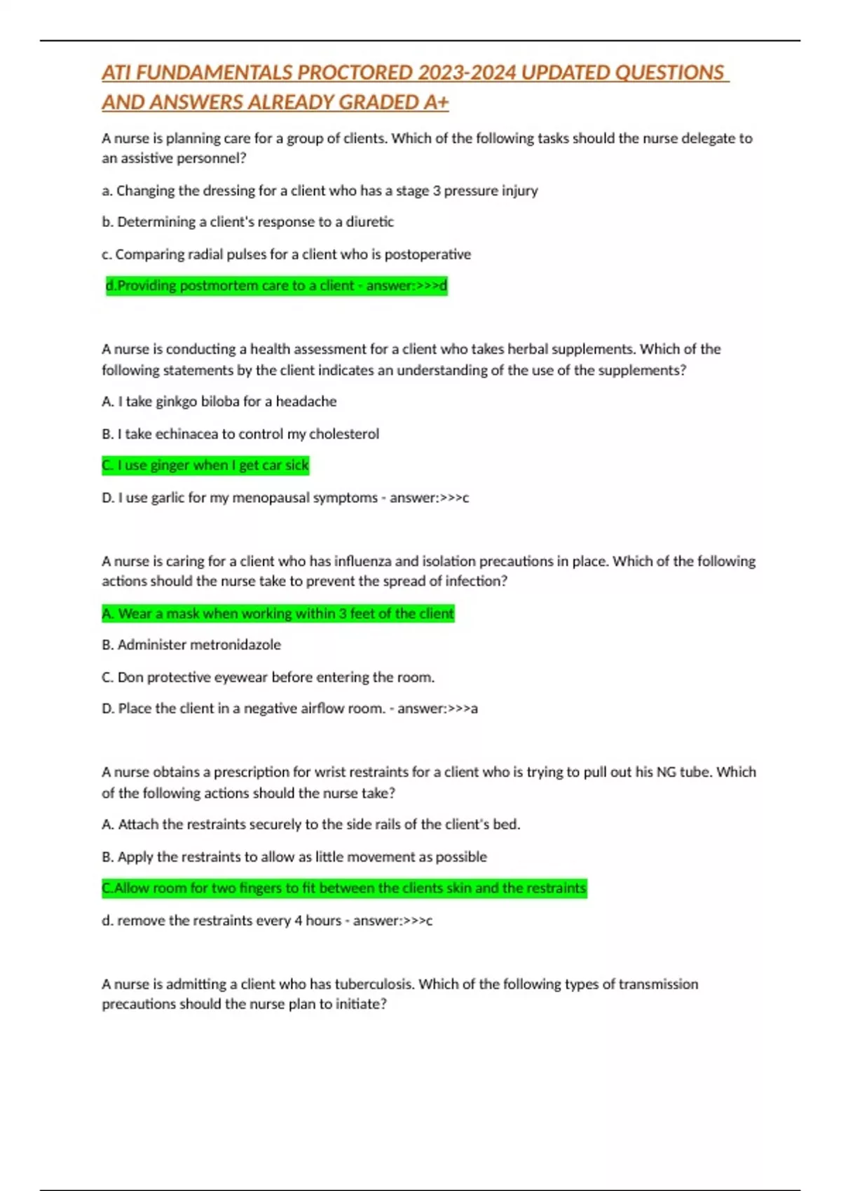 ATI FUNDAMENTALS PROCTORED UPDATED QUESTIONS AND ANSWERS ALREADY GRADED A+