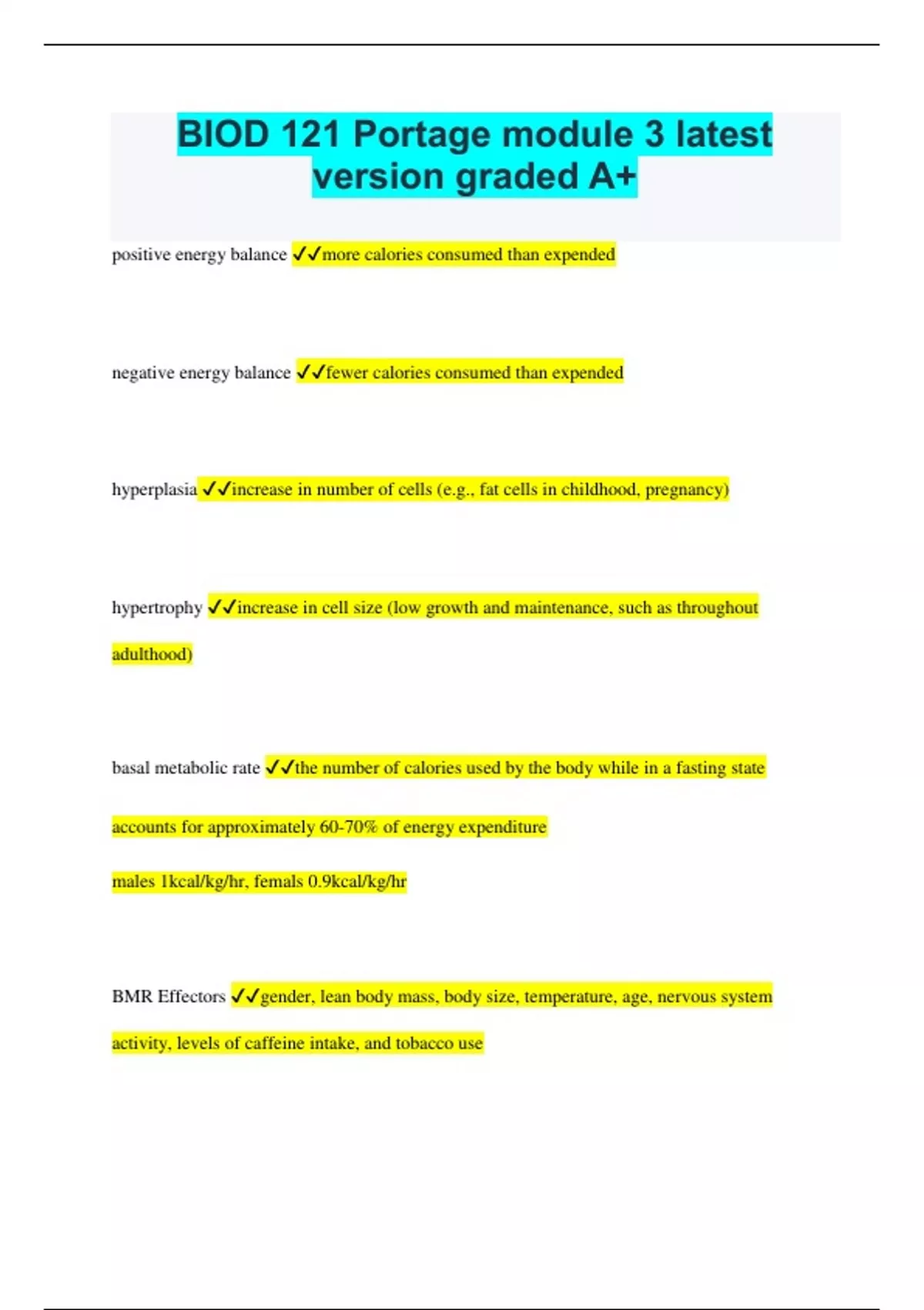 biod 121 portage module 3 latest version graded a