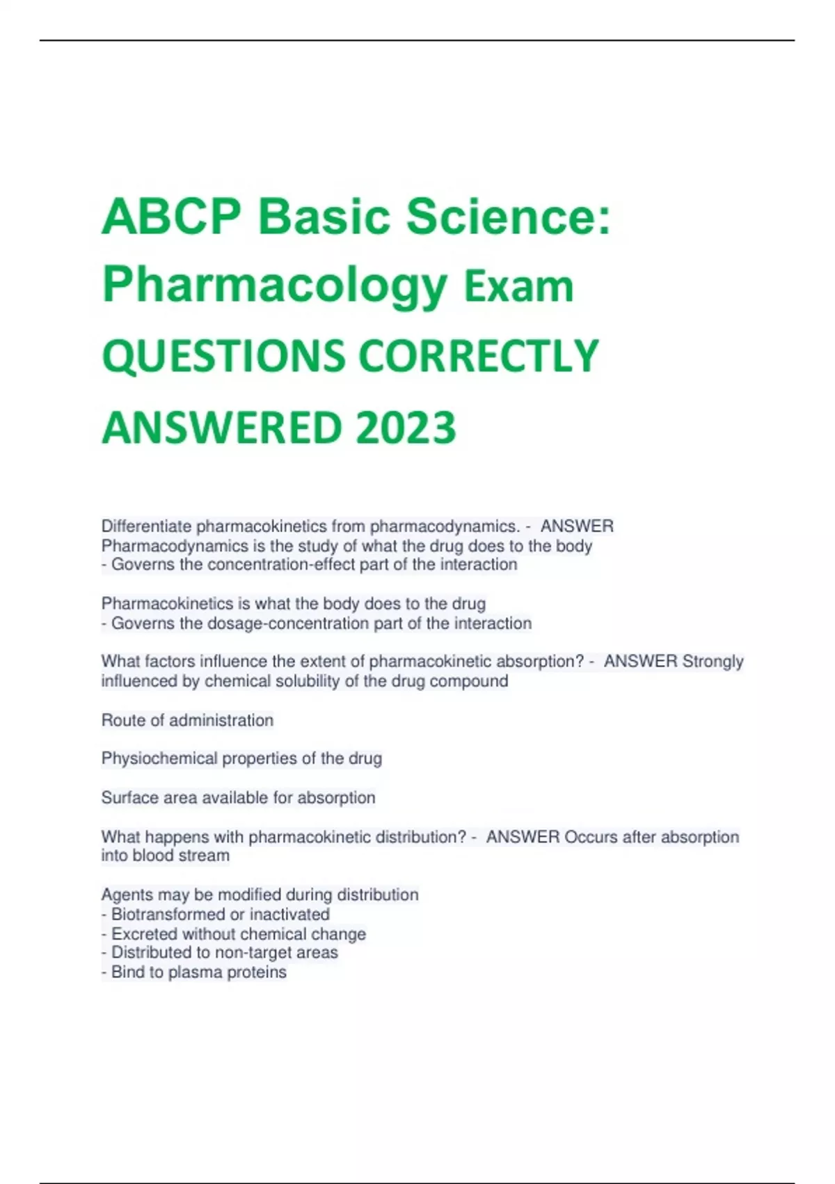 ABCP Basic Science: Pharmacology Exam QUESTIONS CORRECTLY ANSWERED 2023