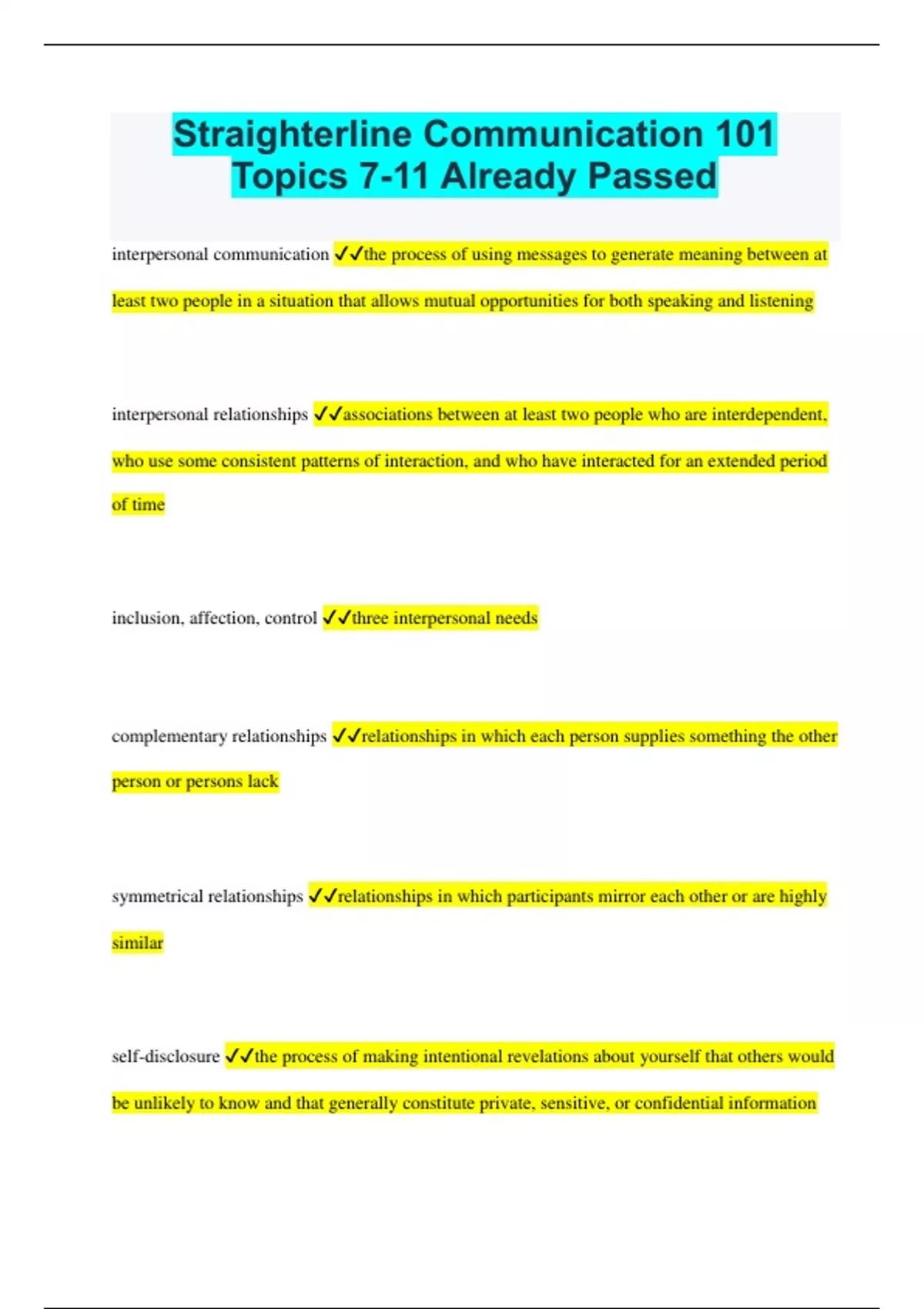 Straighterline Communication 101 Topics 7-11 Already Passed