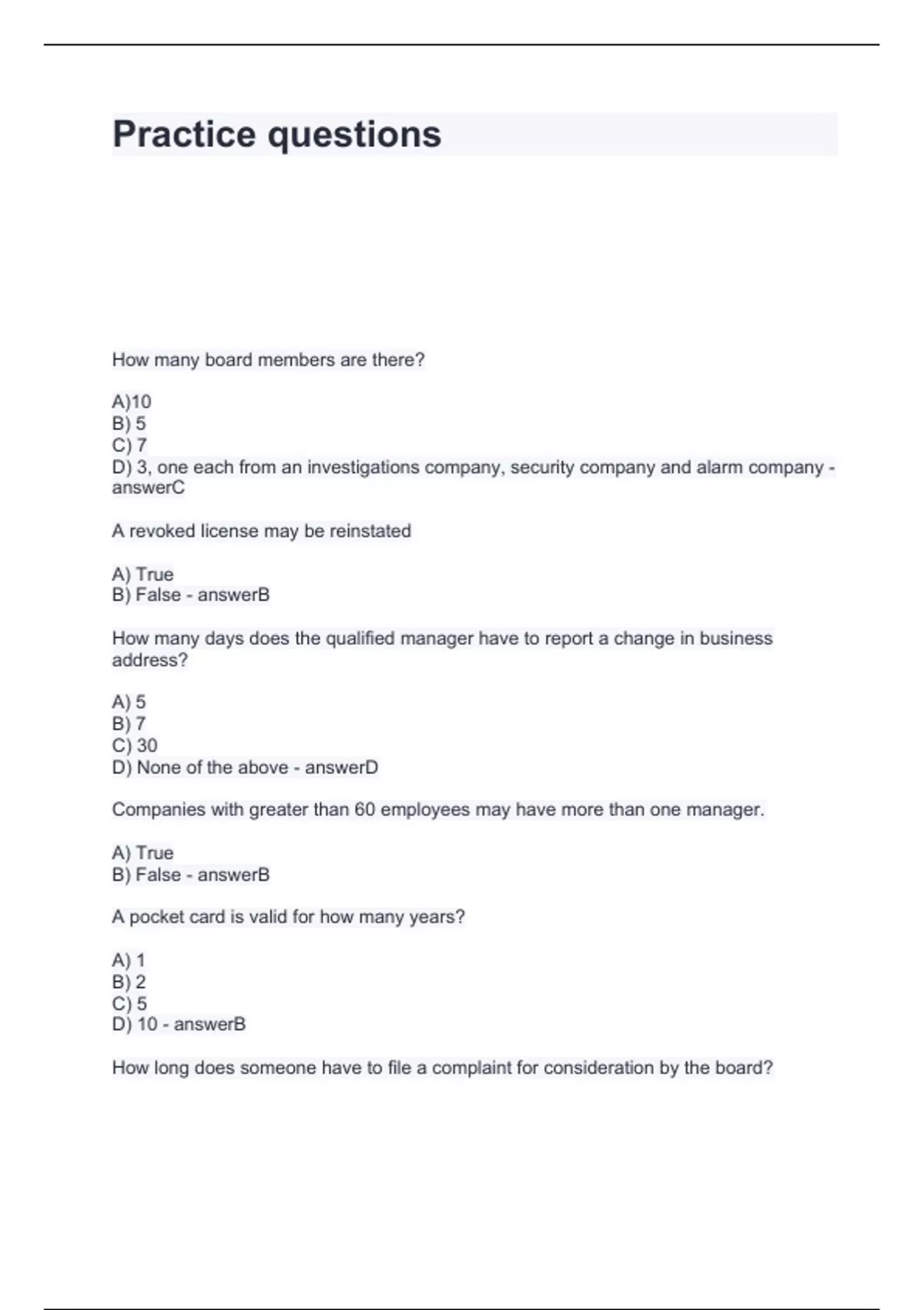 Exam of 11 pages for the course Texas private security at Texas private security (Practice questions)