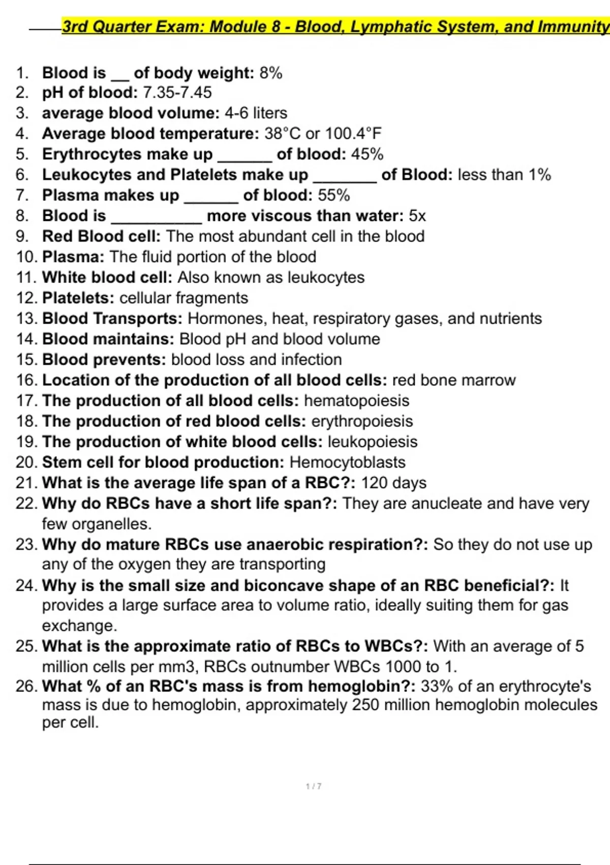 3rd Quarter Exam Module 8 - Blood, Lymphatic System, and Immunity.
