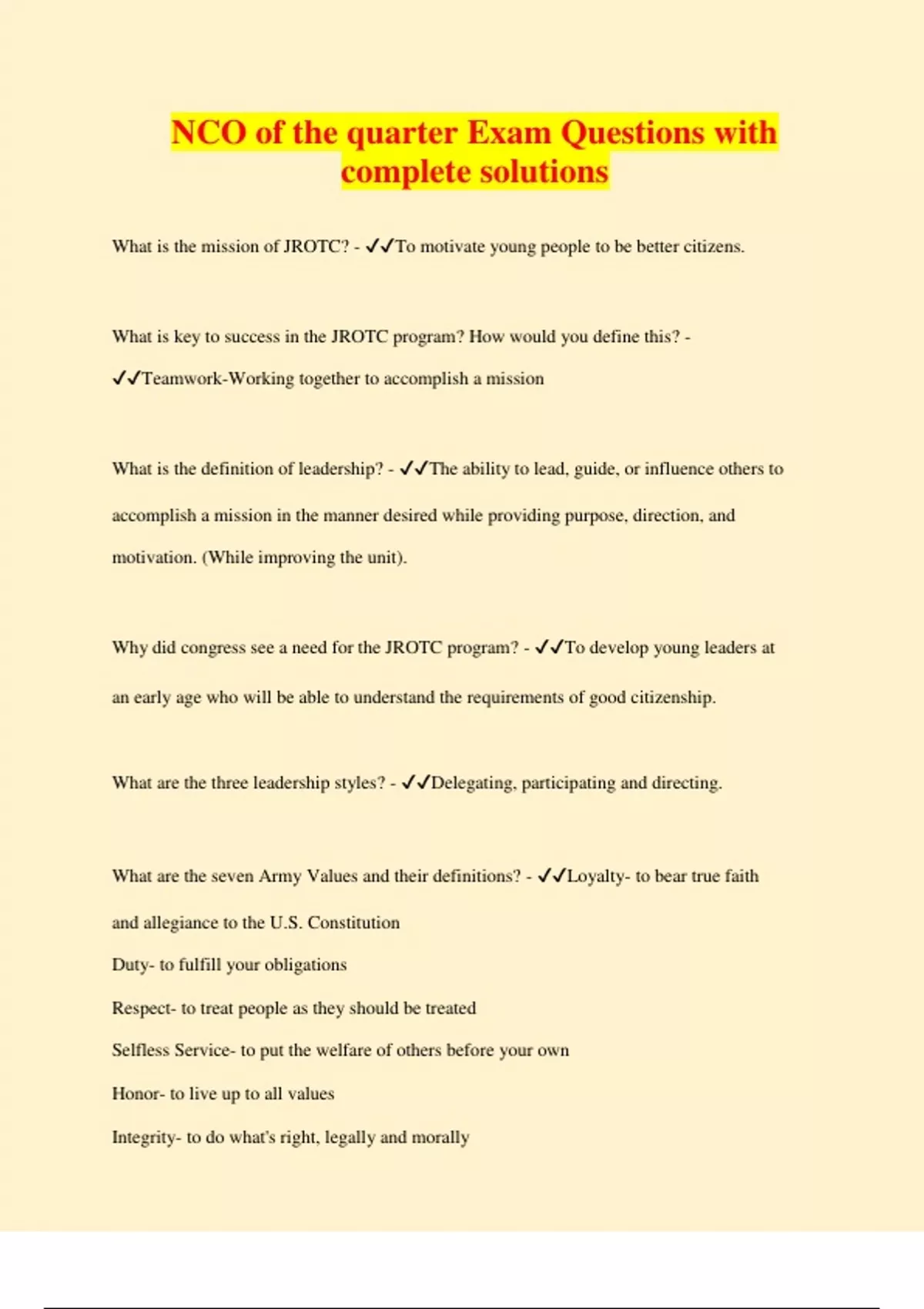 NCO of the quarter Exam Questions with complete solutions