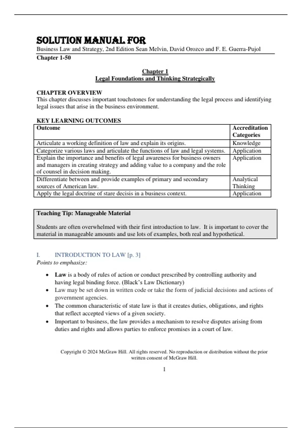 Solution Manual For Business Law and Strategy, 2nd Edition Sean Melvin, David Orozco and F. E. Guerra-Pujol Chapter(1-50)