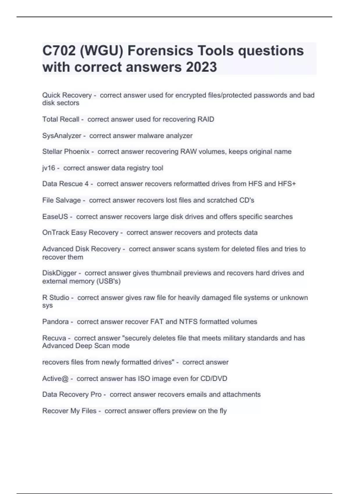 c702 wgu forensics tools questions with correct