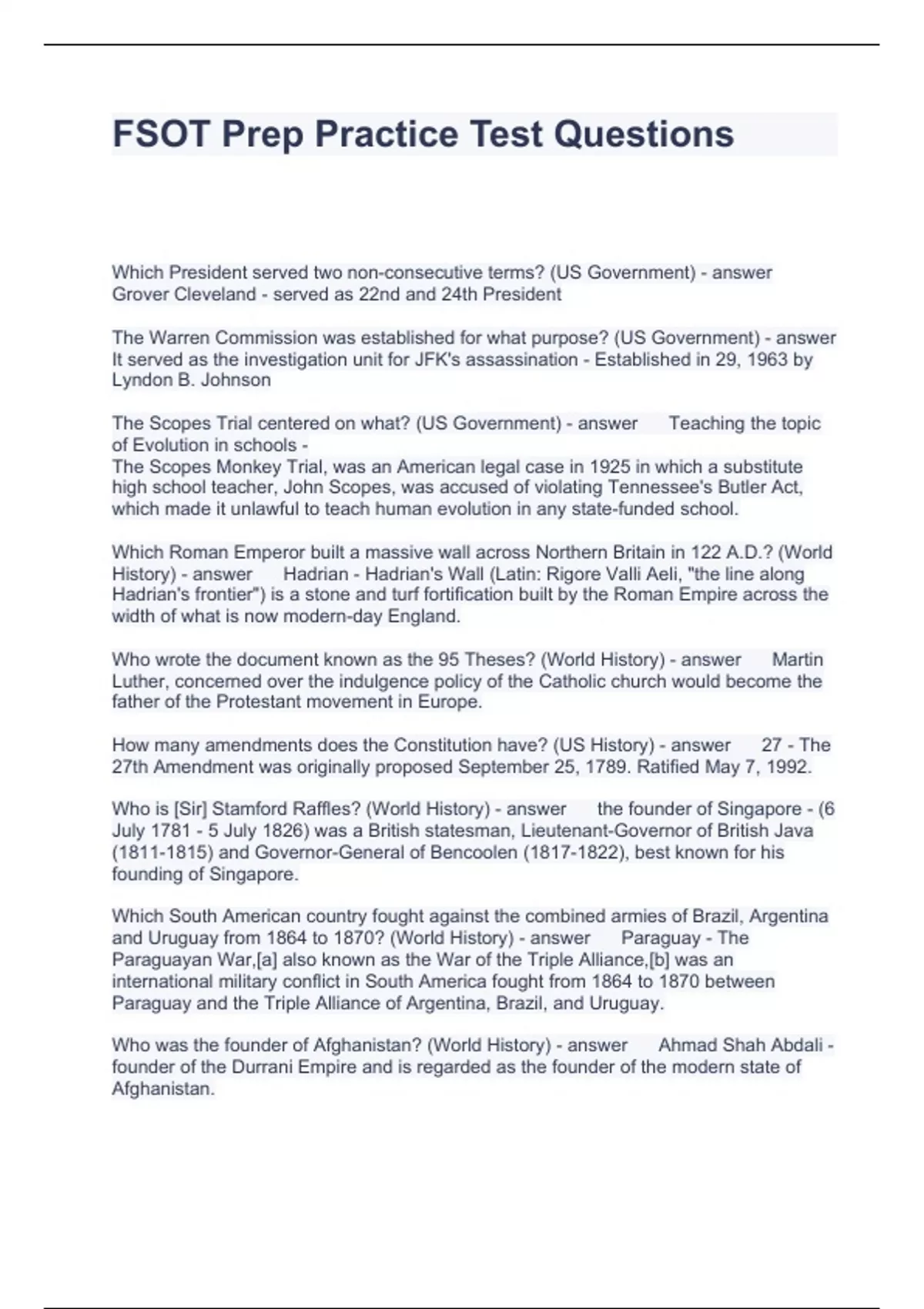 BUNDLE OF FSOT TEST EXAM GRADED A+