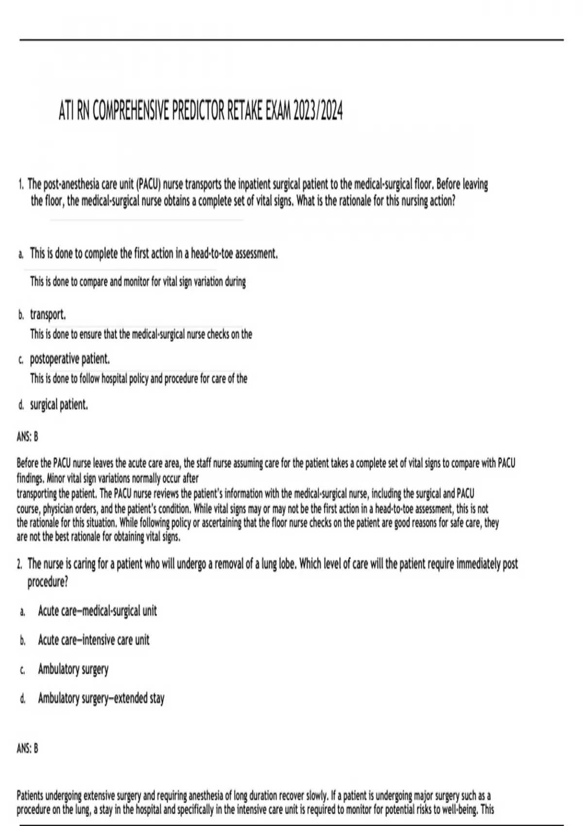 ATI RN COMPREHENSIVE PREDICTOR RETAKE EXAM 2023/2024 ATI RN COMPREHENSIVE PREDICTOR RETAKE EXAM 2023/2024 ATI RN COMPREHENSIVE PREDICTOR RETAKE EXAM 2023/2024