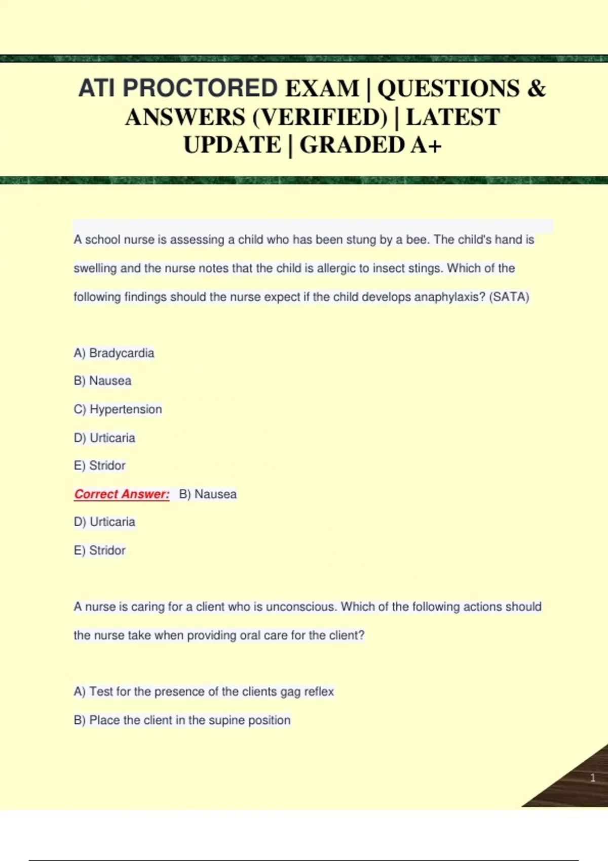 ATI PROCTORED EXAM | QUESTIONS & ANSWERS (VERIFIED) | LATEST UPDATE | GRADED A+ATI PROCTORED EXAM | QUESTIONS & ANSWERS (VERIFIED) | LATEST UPDATE | GRADED A+