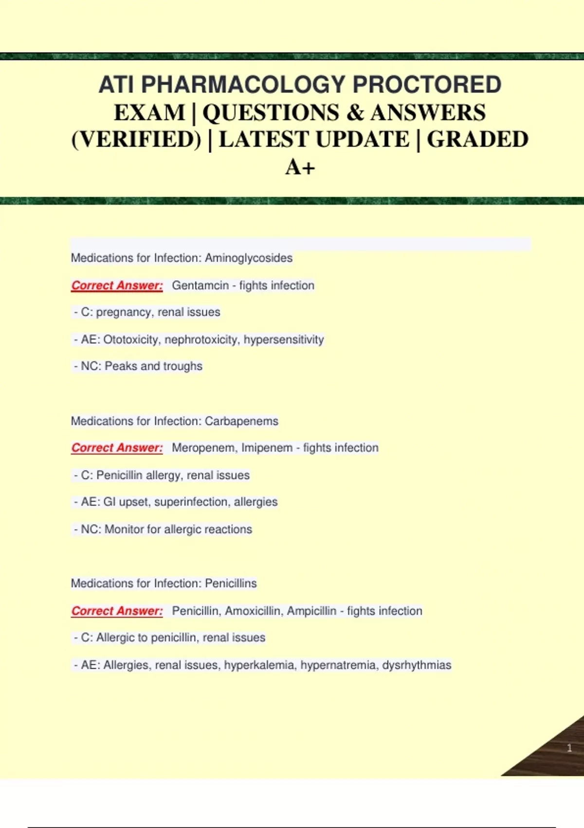 ATI PHARMACOLOGY PROCTORED EXAM | QUESTIONS & ANSWERS (VERIFIED) | LATEST UPDATE | GRADED A+